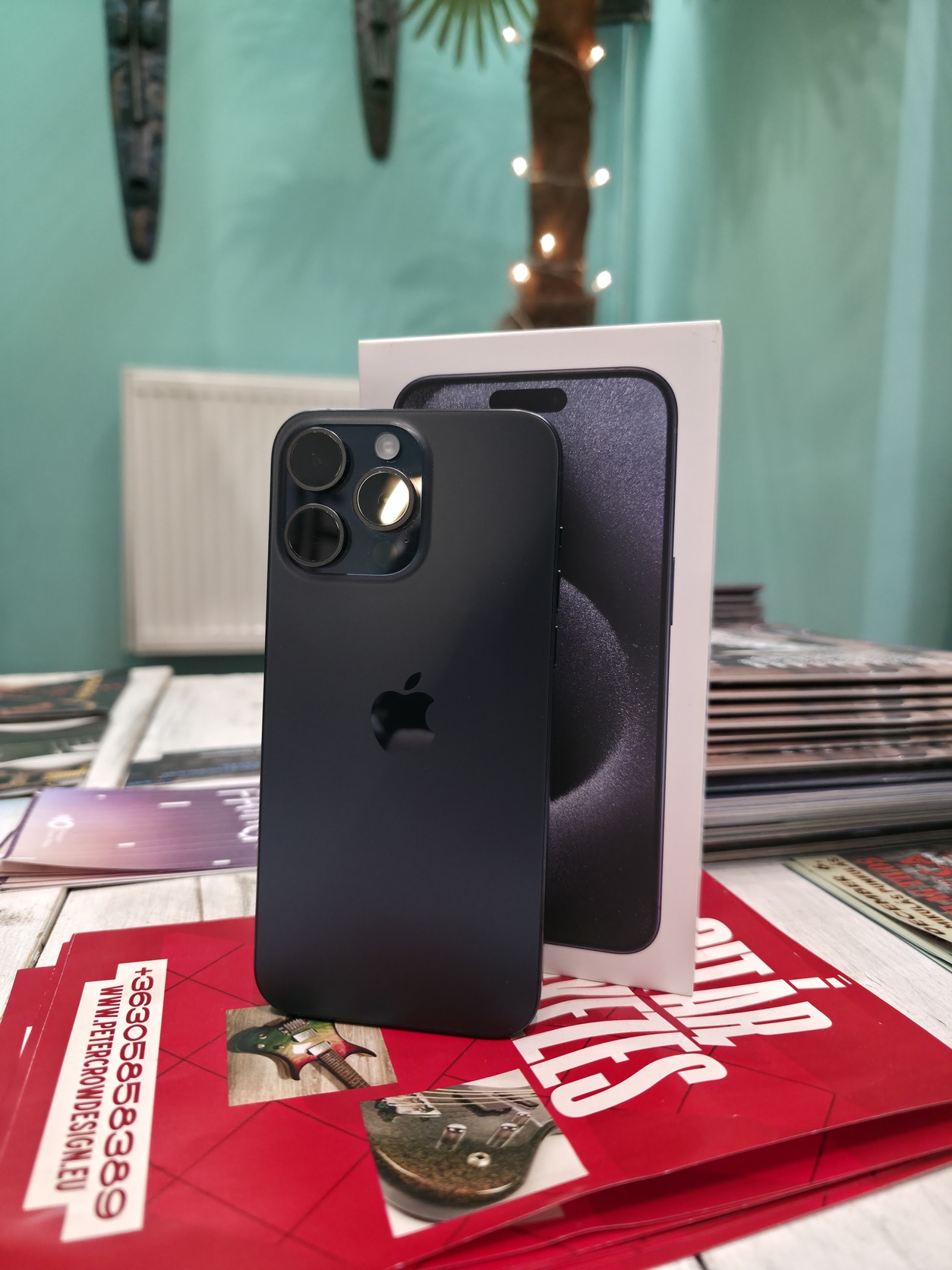 Eladó a képeken látható, rendkívül szép állapotú iPhone 15 Pro Max (256 GB, Blue Titanium, kártyafüggetlen).