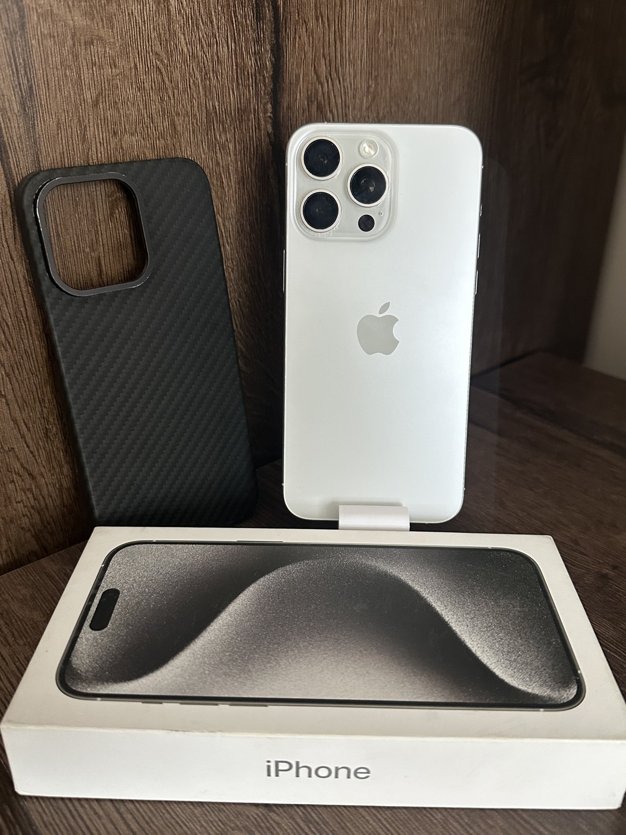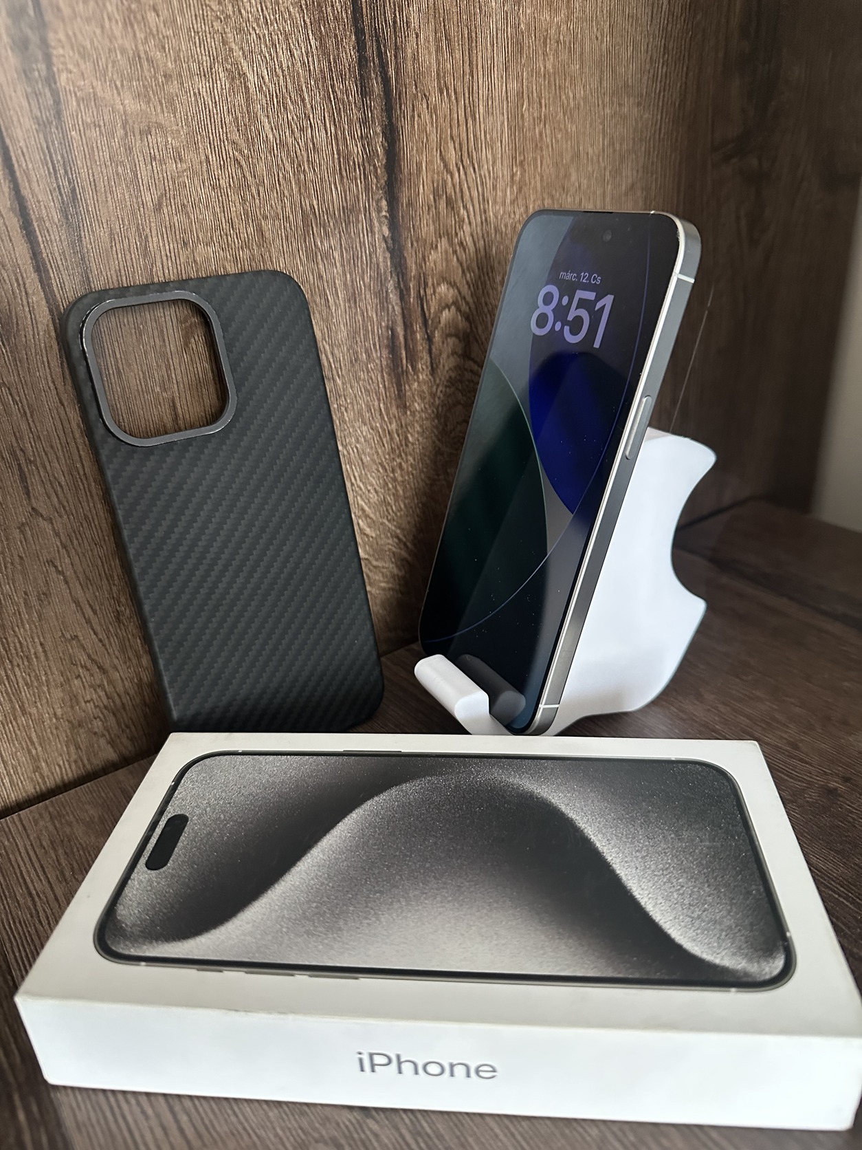 iPhone 15 PRO MAX 256GB fehér titán KÁRTYAFÜGGETLEN! Fulldoboz! Akku 87% + TACTICAL tok!