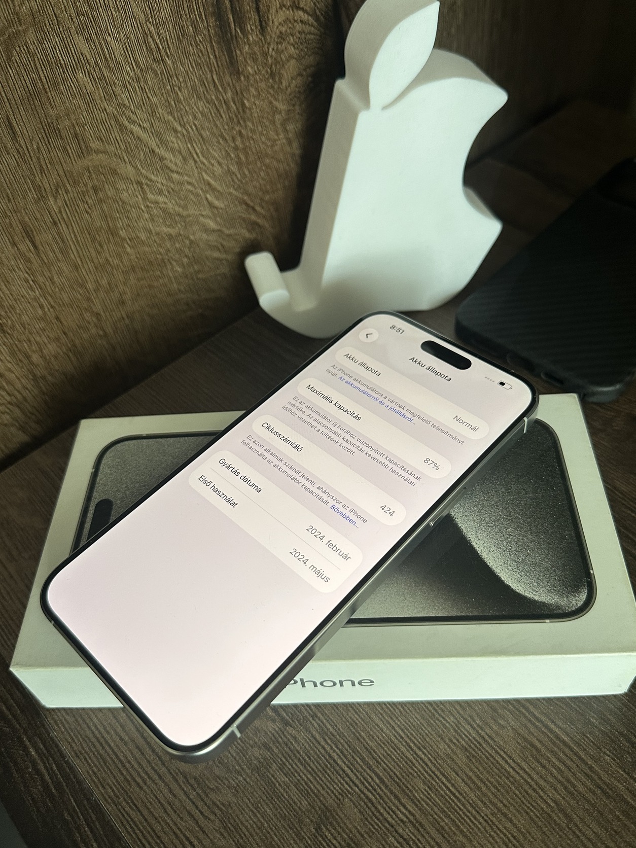 Akkumlátor: 87% akkumulátor ciklus: 424