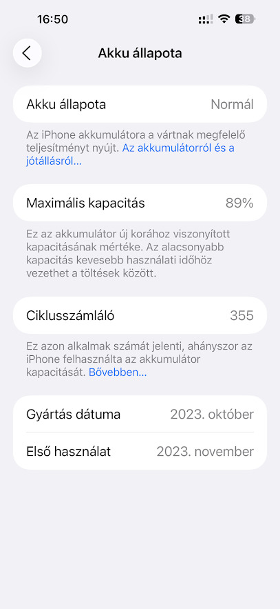 Készülékváltás miatt eladó, 2023.11.27.-én vásárolt kártyafüggetlen készülék, 89% akkumulátorral, hibátlan,karcmentes állapotban,gyári tartozékkal,dobozában . Adásvételi szerződéssel és számlával, ajándék kijelzővédő fóliákkal és metal tokkal.