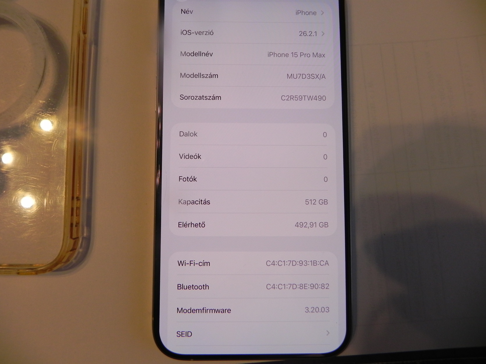 iPhone 15 Pro Max 512GB 86% akku titán fehér.