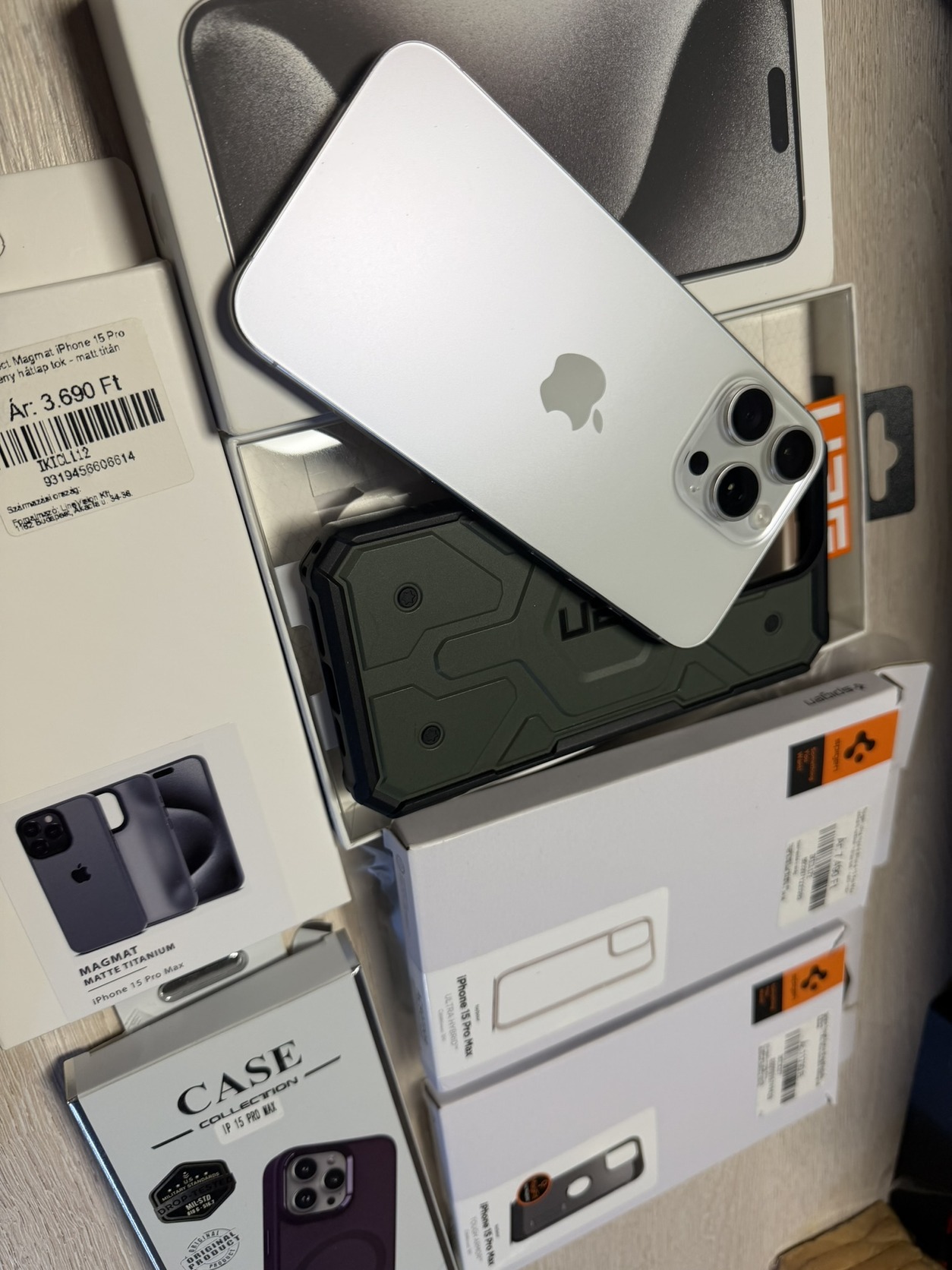 iPhone 15 Pro Max White Titanium 256 GB 1 év gari, ÚJ ÁLLAPOT!