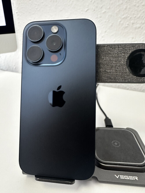iPhone 15 Pro Titanium Blue 128 GB - 1 év garancia, 100% akkumulátor