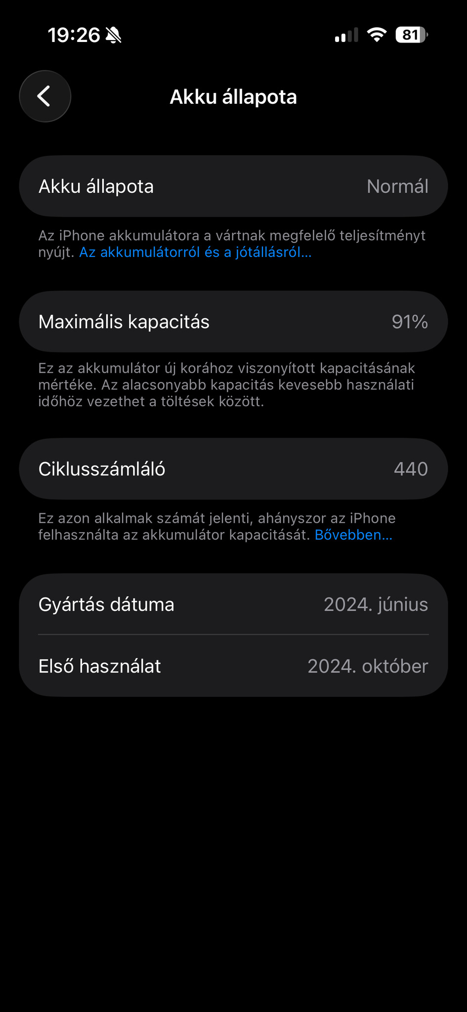 • Akkumulátor állapot: 91 %