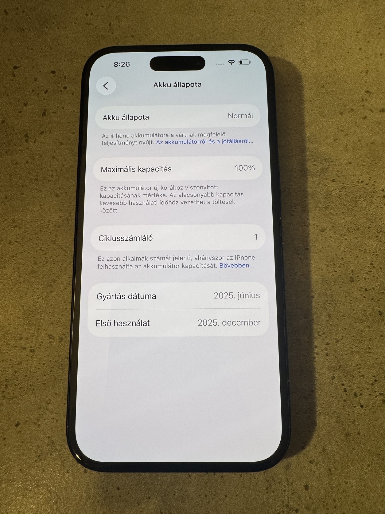 akku 100%, 1 ciklus.