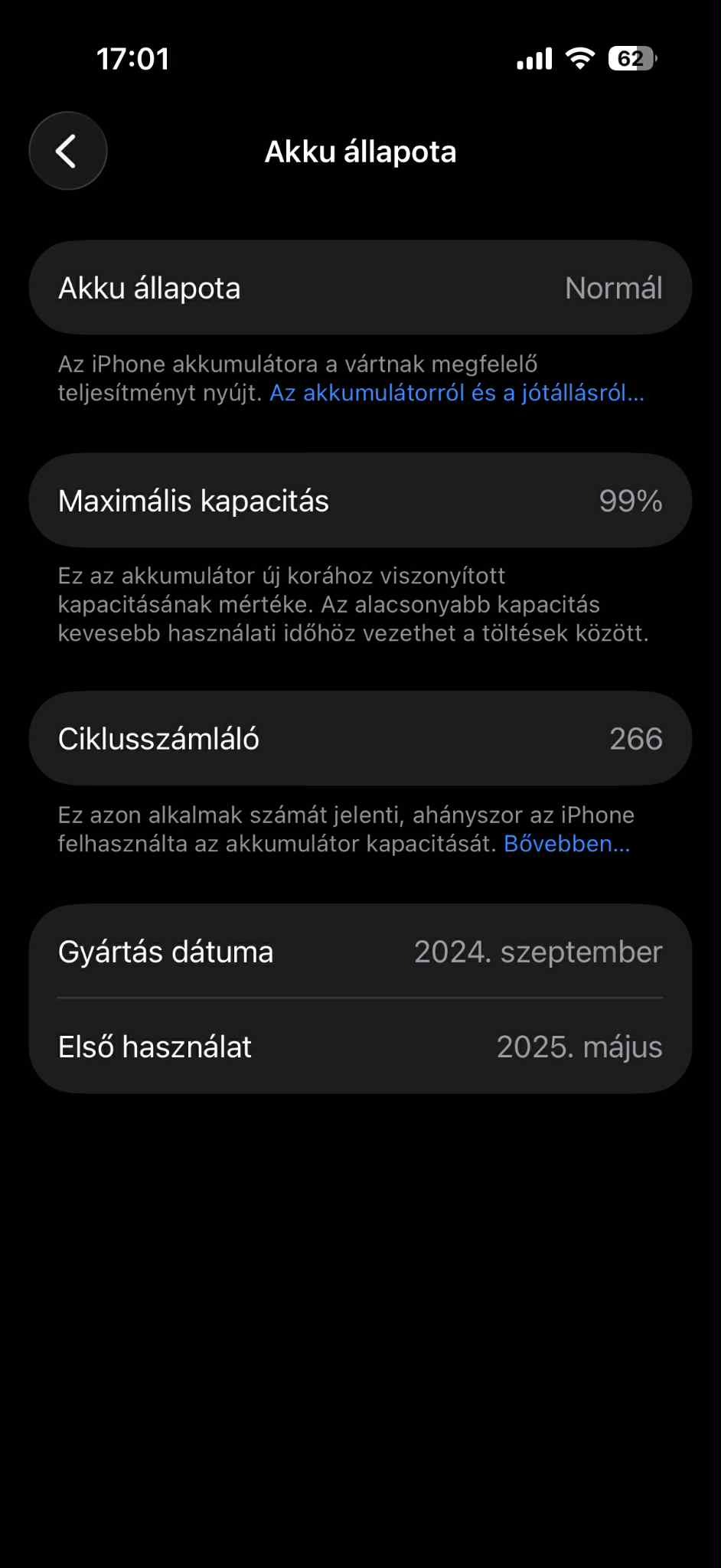 Akkumulátor állapot:99%(266 ciklus,képpel mellékelve!)