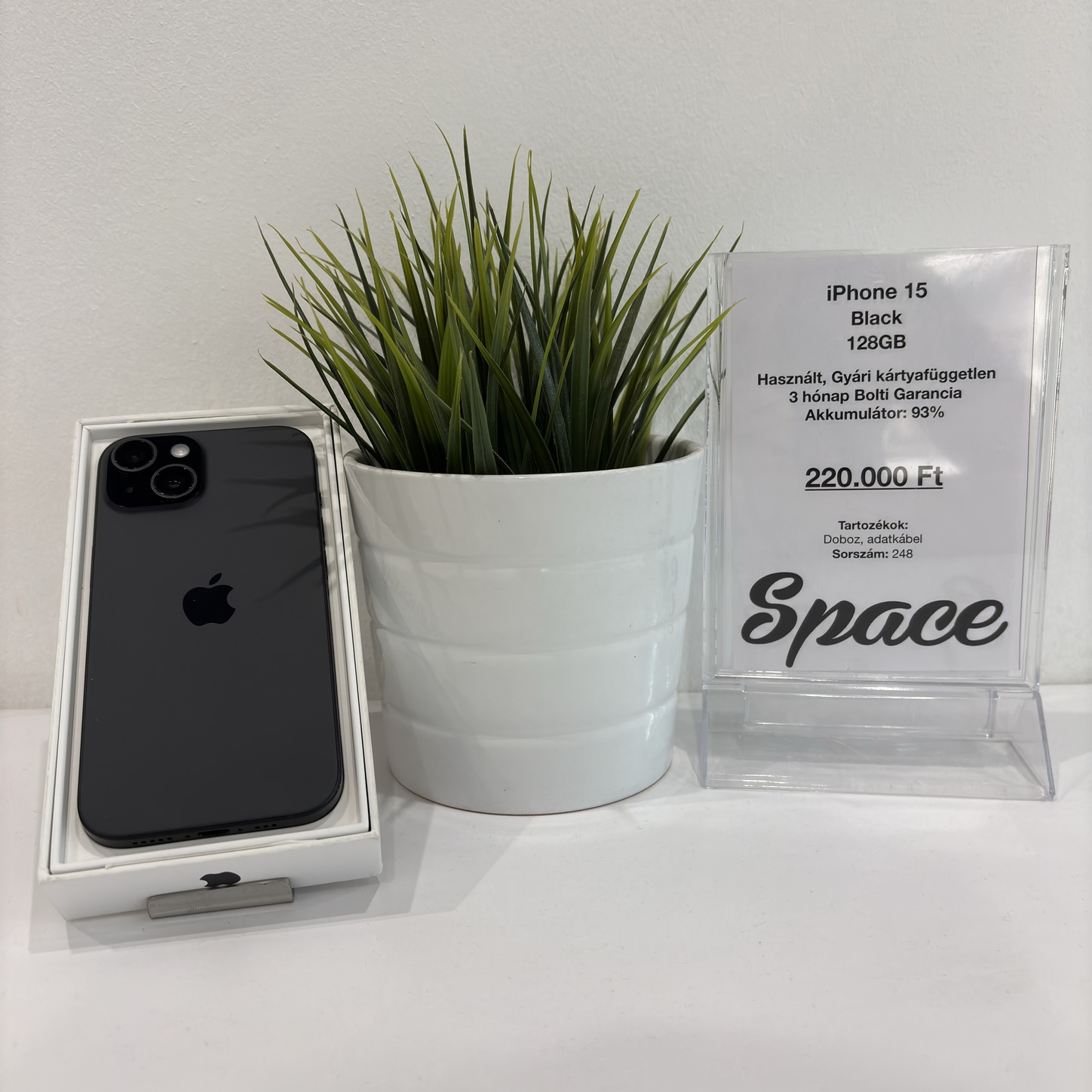 iPhone 15 / 128GB / Black / Gyári kártyafüggetlen (248)