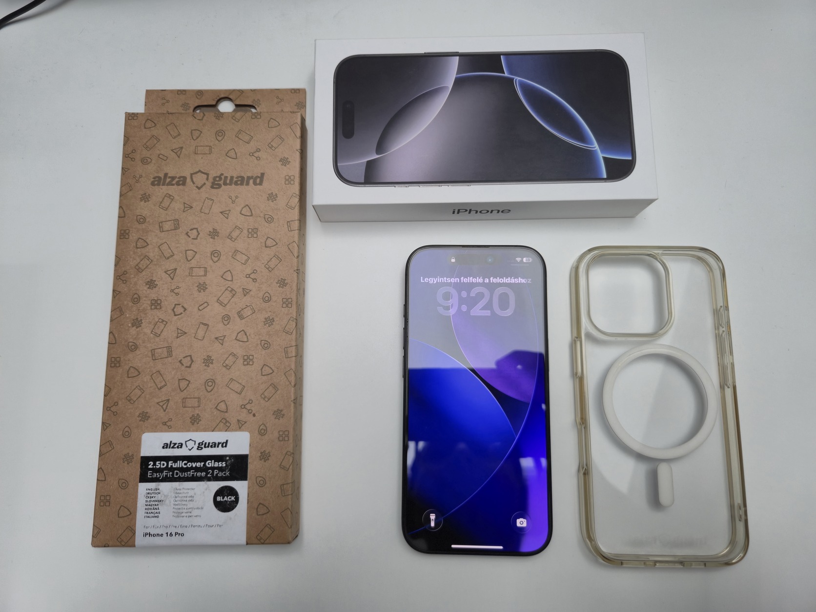Doboza, tartozékai, számla, adom hozzá a tokomat, rajta marad a fólia és talán van egy extra fóliám is.