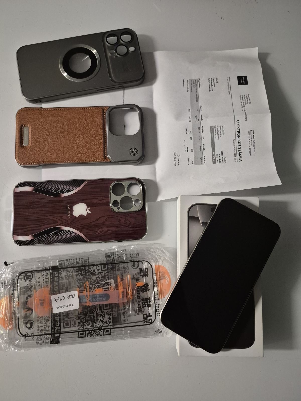 Doboz, kábel, 3 tok, üveg fólia, számla!