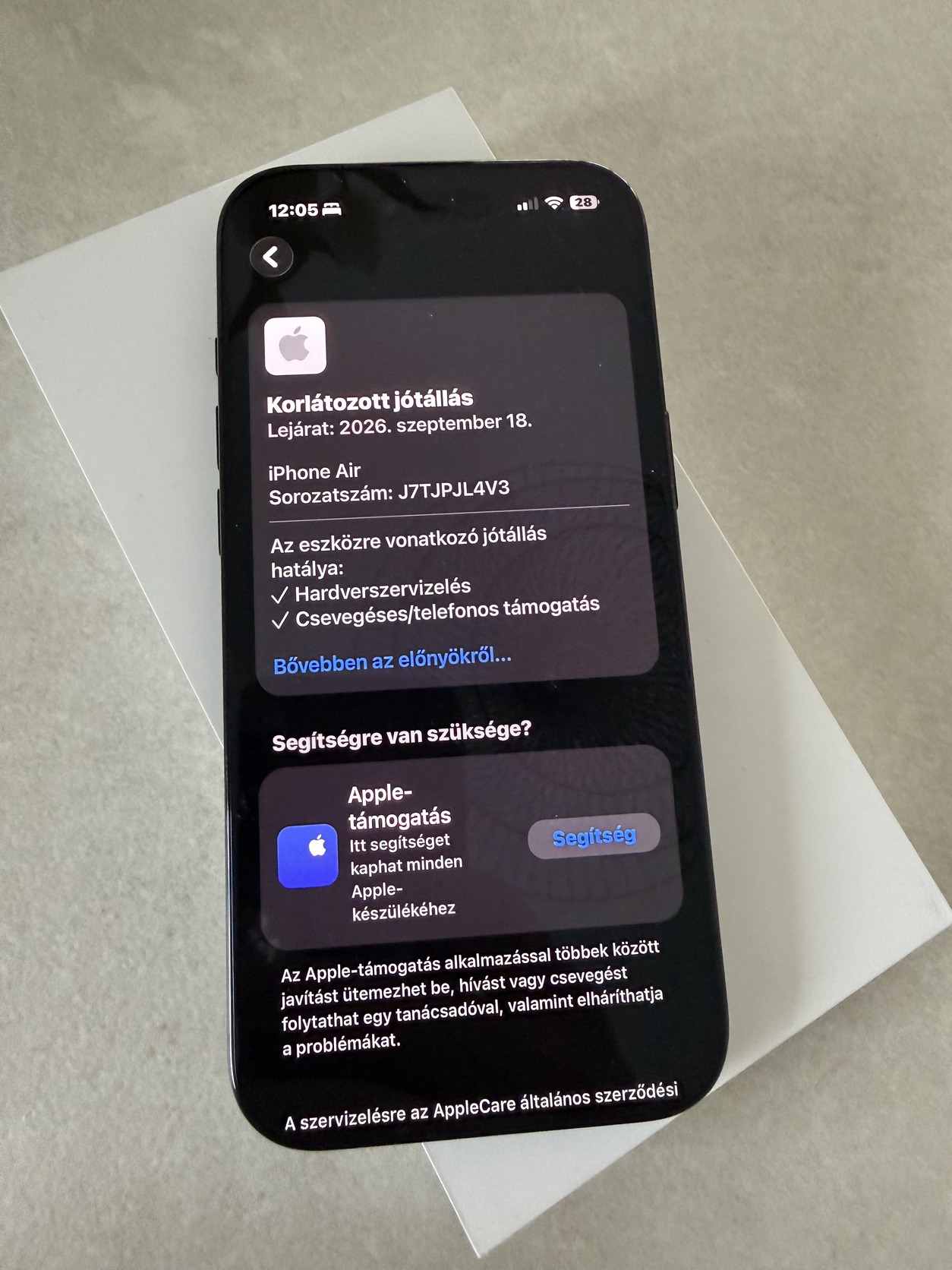 Eladó egy iPhone 17 Air, független, dobozában, minden tartozékával, 2026.09.18. napjáig garanciális.