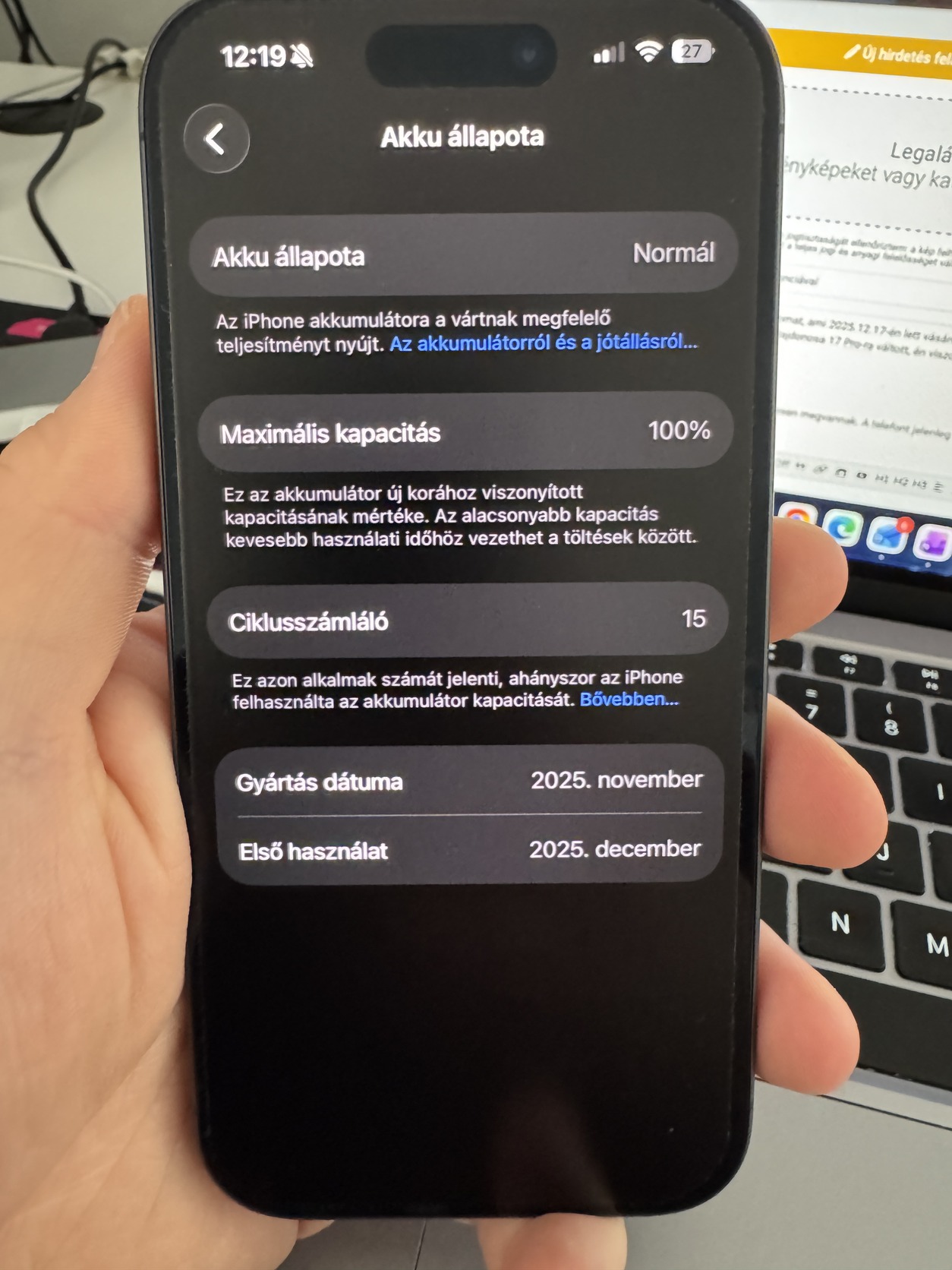 Eladnám iPhone 17 telefonomat, ami 2025.12.17-én lett vásárolva a MediaMarktban. A telefonnak én vagyok a második tulajdonosa, mert az első tulajdonosa 17 Pro-ra váltott, én viszont nem tudom megszokni a kisebb méretet a 15 Pro Max után, így szeretnék megválni tőle. Ahogy a képeken is látható, a telefon hibátlan állapotú, mindösszesen 15 ciklus van benne, egyébként pedig egy gyors, nagyon szép telefon.