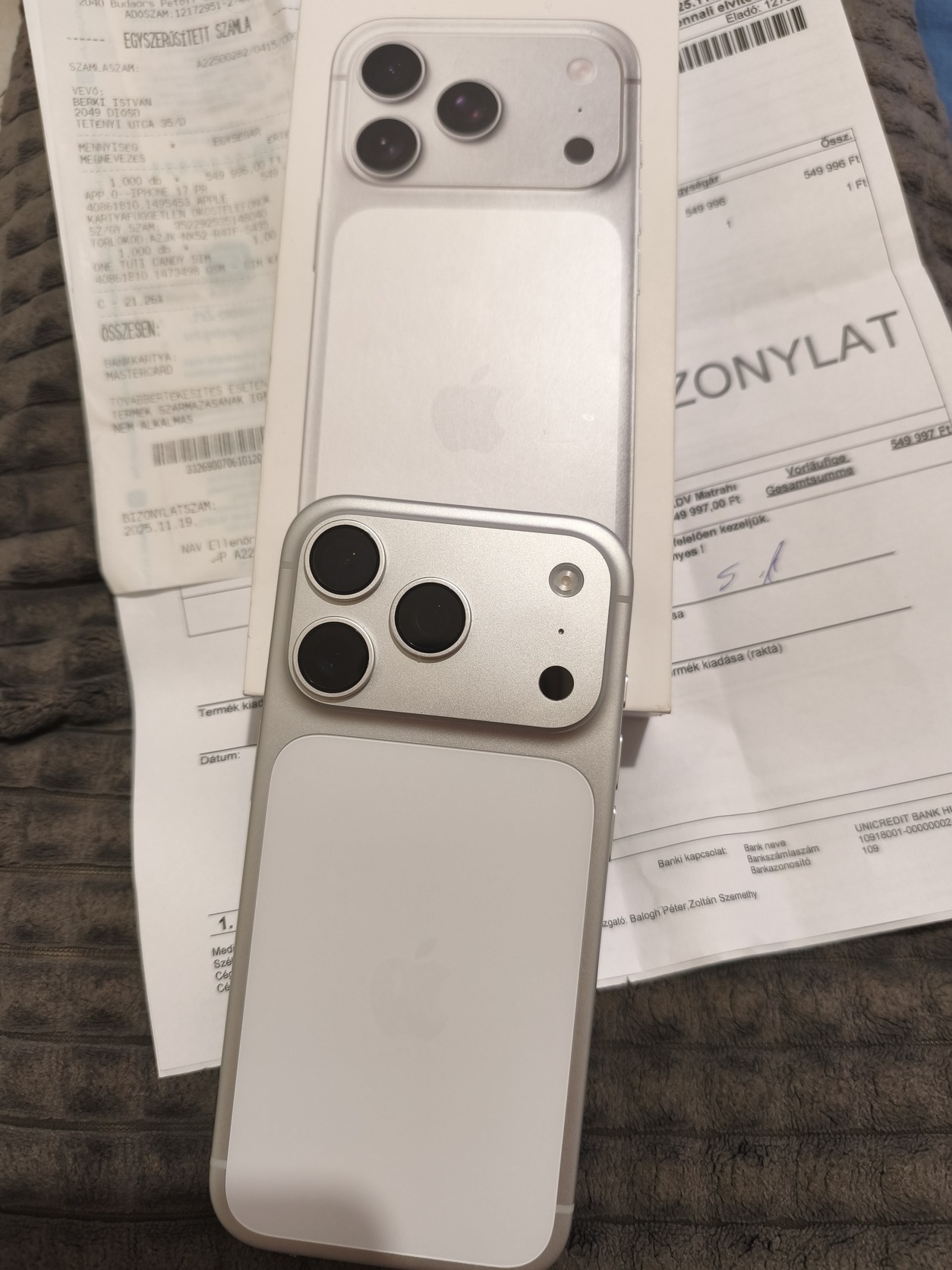 Eladó egy Iphone 17 Pro 256GB Silver, MediaMark vásárlás! 2025.11.19. onnantól 36 hó garancia! A telefon új állapotú! Doboza, számlája, garancia leve megvan! Alkudozás nem érdekel! Telefont betudok számítani