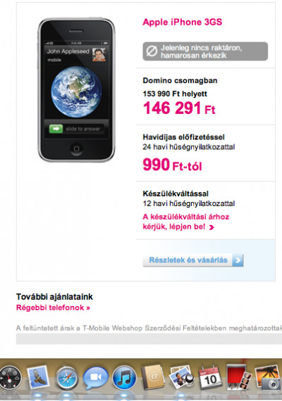 nem mindig van egyébként összhangban az általad mutatott az oldal az iphone.t-mobile.hu oldallal, mert a képen látható, hogy nincs raktáron, de iphone külön oldalon van amikor rendelhető mégis. most ott sem, ([link]). de ilyen volt már sajnos... viszont most huzamosabb ideje nincs. Ez megfejelve a mobiltv-vel, meg a banner,,, én nem tudom elképzelni, hogy októberre csússzon... viszont a 17.-ben sem hiszek már nagyon. talán 20 vagy 24. ez a 2 időpont ami talán esélyes.