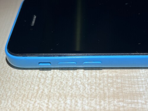Kék színű, a csatlakozónál és a gomboknál a ház nincs repedve, de a hátlap és a kijelző üvege is karcos. A bal oldali gomboknál kicsit a kijelző széle elemelkedik az illesztésnél (próbáltam lefotózni), de nem mozog, nincs nagy rés.