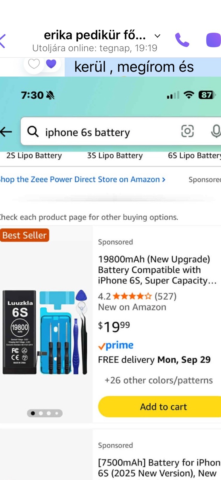 Eladó egy bontatlan Iphone 6s akkumlátor csomag.