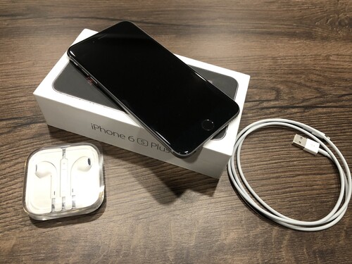 Eladó iPhone 6S Plus 64 GB Space Gray. Eredeti dobozával és a képeken látható gyári tartozékaival együtt adom (adapter sajnos nincs meg).