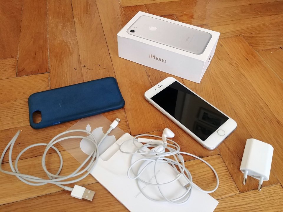 Eladó a fotókon látható, teljesen karcmentes állapotú, elöl fóliával is védett, ezüst Apple iPhone 7 128 GB. A mobil gyárilag kártyafüggetlen, nemrég lett 1 éves, így garancia már nincs rá. Minden funkciója tökéletesen működik és esztétikailag is kifogástalan. A gyári dobozában a jack adapteren kívül minden tartozéka megvan, a fülhallgató soha nem is volt használva. Gyári, kék Apple bőrtok jár hozzá, ezen látszanak a használat nyomai, viszont meg is védték a mobilt. :)