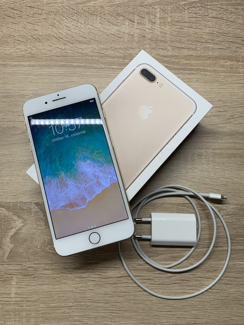 Elado iPhone 7 Plus 32GB Gold. Dobozzal, papirokkal, toltovel, hatlapja kifogastalan, karcmentes, vegig tokban tartott, elolapon par hajszalkarccal, kartyafuggetlen.