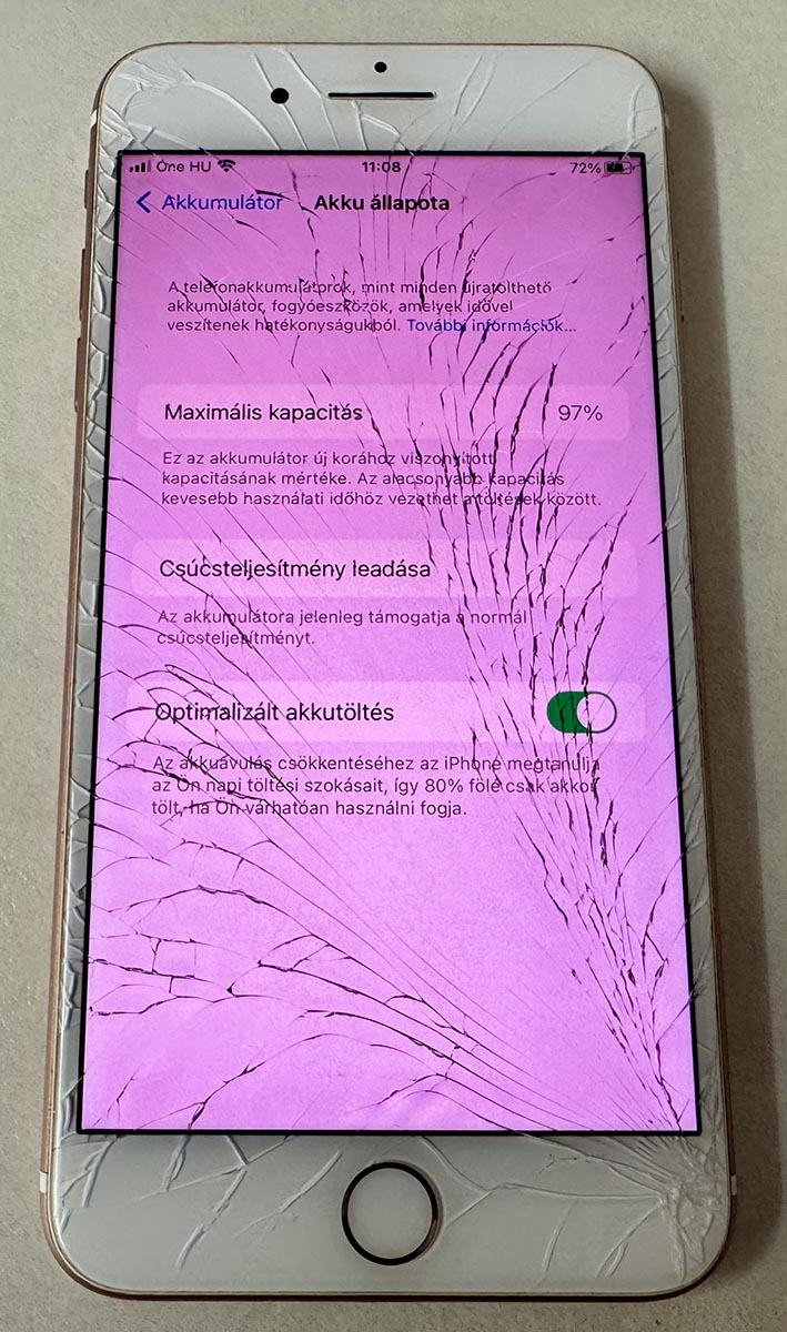 Kijelző törött, de minden működik, akku 97%. Alkatrésznek, stb...