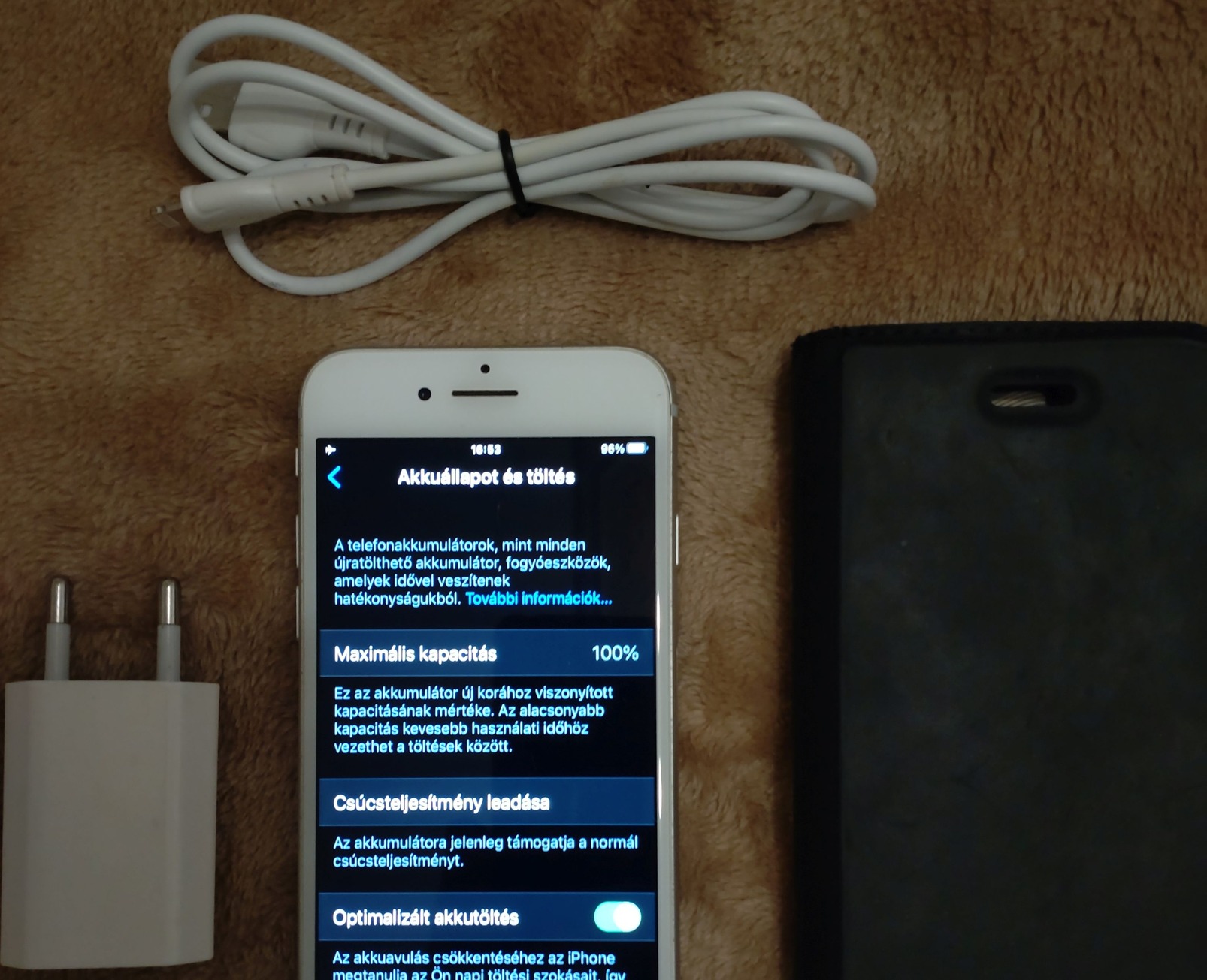 Jár hozzá egy flip tok, valamint a töltője is, a dobozát viszont már nem találtam meg.