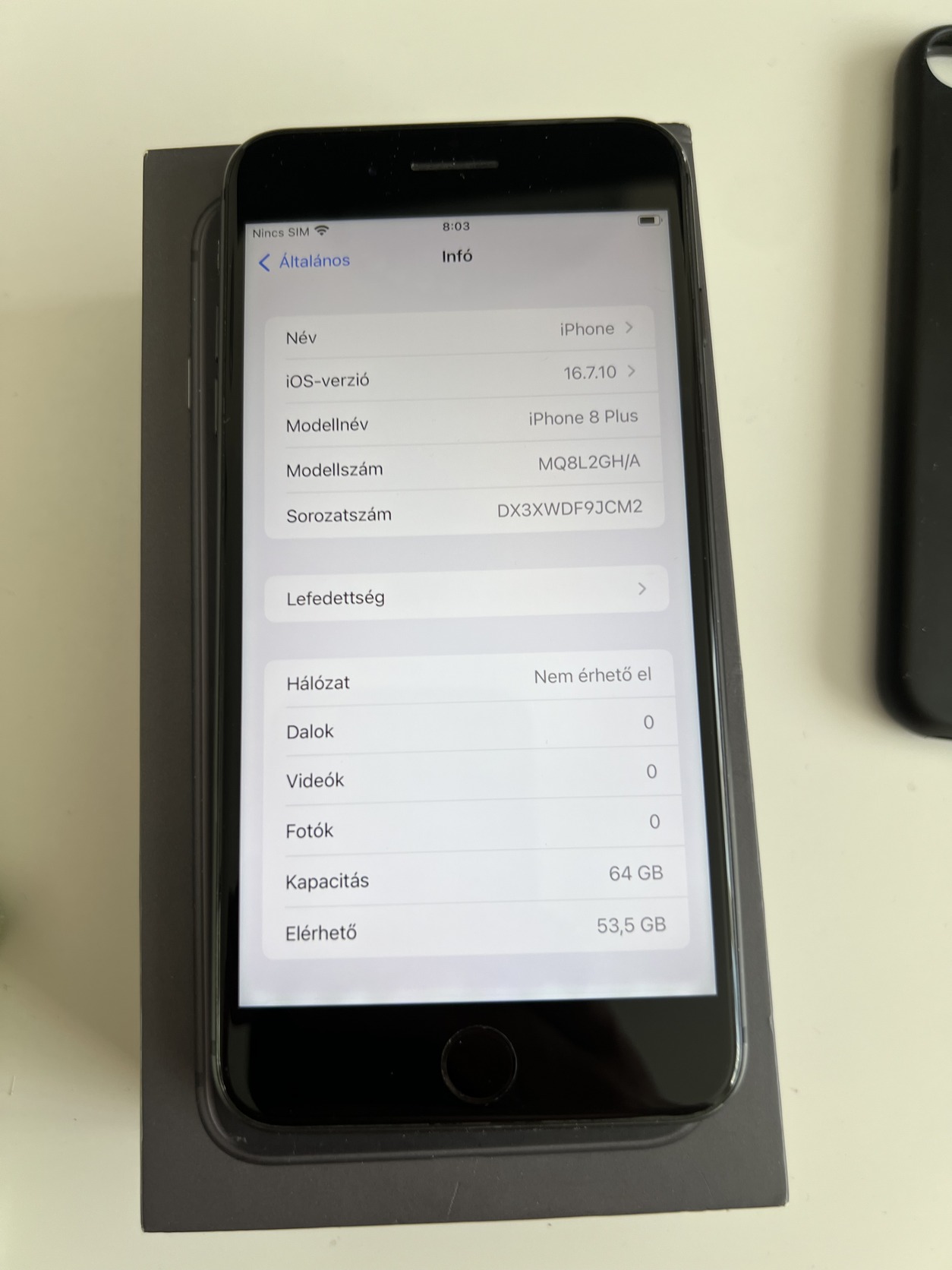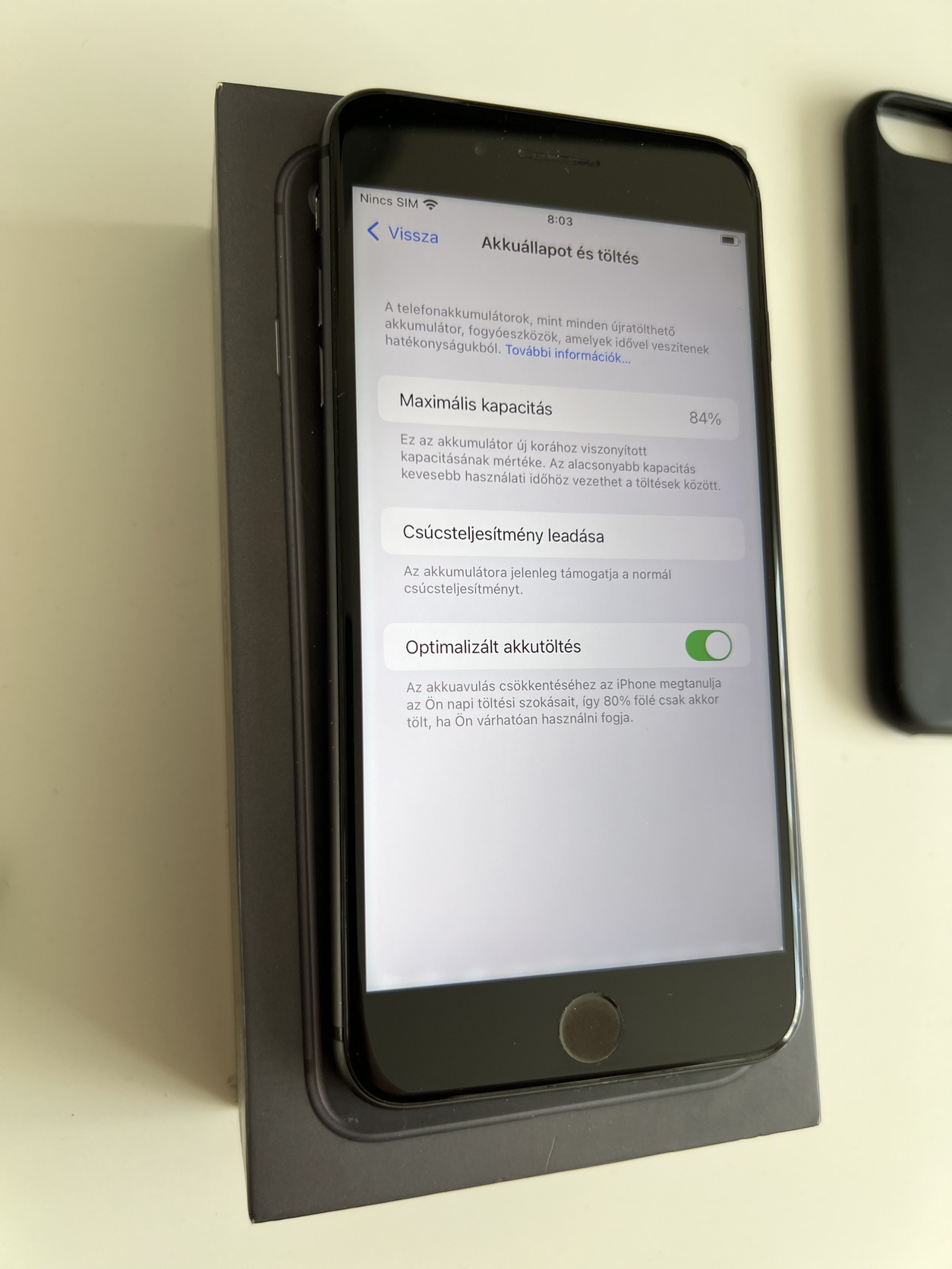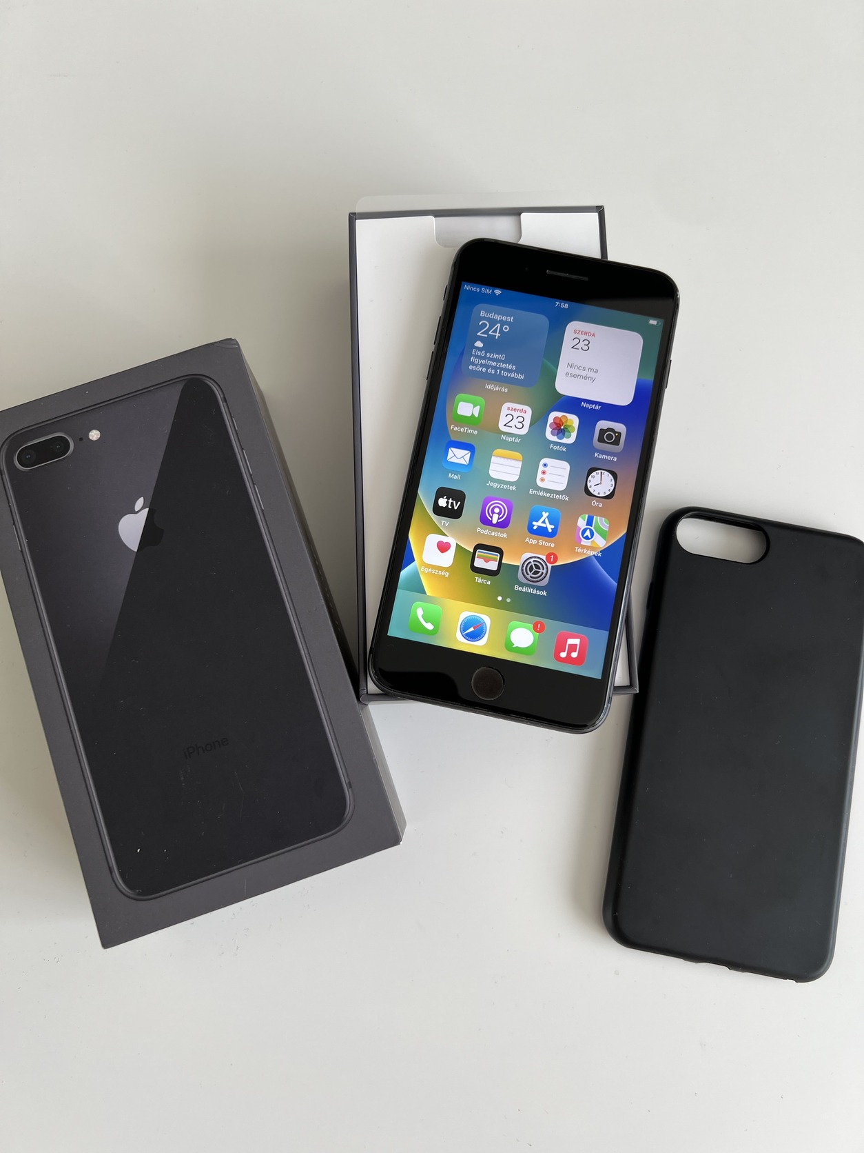 Eladó egy normál állapotban lévő kártyafüggetlen iPhone 8 Plus Black 64GB, minden funkciója tökéletesen működik, akksi 84%.