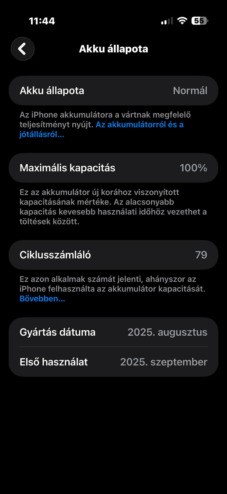 • Mint az új: Az akkumulátor állapota 100%, a készülék pedig esztétikailag is hibátlan.