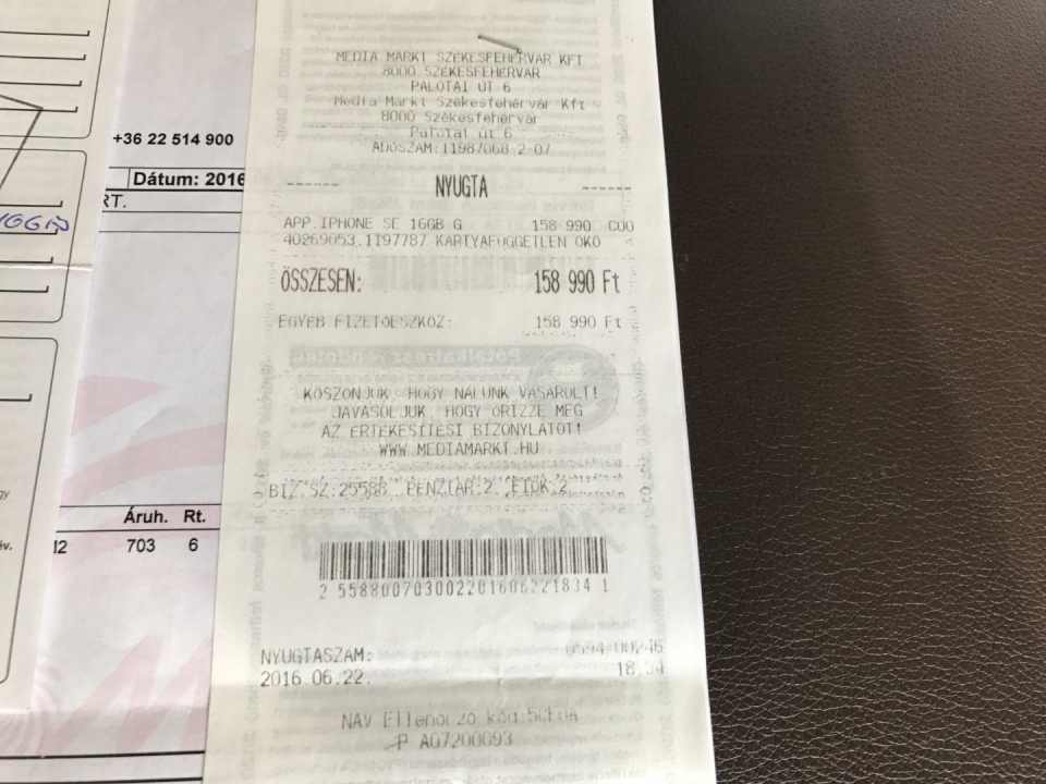 iPhone se 16gb független, media markt-os 2016 06. 22.-én vásárolt. Pici sérülés a tetején.