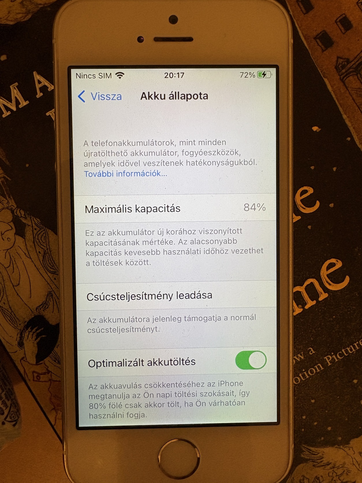 Akkumulátora 84%-os, iCloud-ból kilépett, kártyafüggetlen.