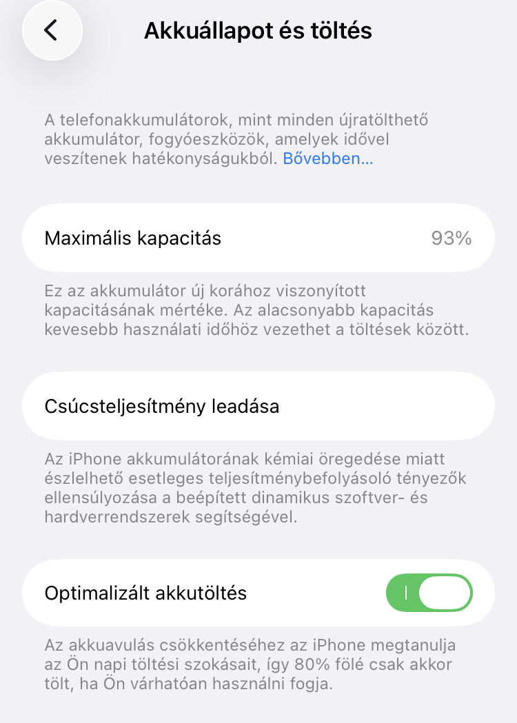 Újabb készülékre váltás miatt eladóvá vált fekete 128 GB-os kártyafüggetlen iPhone SE 2022 (SE3) készülékünk. A telefon nagyon szép állapotban van, tokból kivéve nagyon nehezen találtam rajta szemmel látható használati nyomot. Működése, használata során semmilyen hibát nem tapasztaltunk, kifogástalanul működik, jelenleg ios 26.4 fut rajta. A készüléket én is használtam vásároltam kb. 1 éve, de adás-vételi szerződést írtunk az eladóval, hogy az eredete igazolt legyen a készüléknek. Szükség esetén másolatot tudok adni az adás-vételi szerződésről. A telefonhoz adom a képeken látható hátul perforált (a hőt jobban elvezeti) sötétzöld nagyon jó állapotú szilikon tokot, egy gyári 5W-os töltő adaptert és USB-A-lightning kábelt, egy iPhone SE2022-es dobozt (nem a sajátja) SIM kiszedő tűvel. Az akkumulátora jelenleg 93%-os állapotú. Kérés esetén sorozatszámot küldök. A telefon gyári állapotra van visszaállítva, de az alap beállításokat elvégeztük rajta, hogy vásárláskor azonnal mindent ki lehessen rajta próbálni.