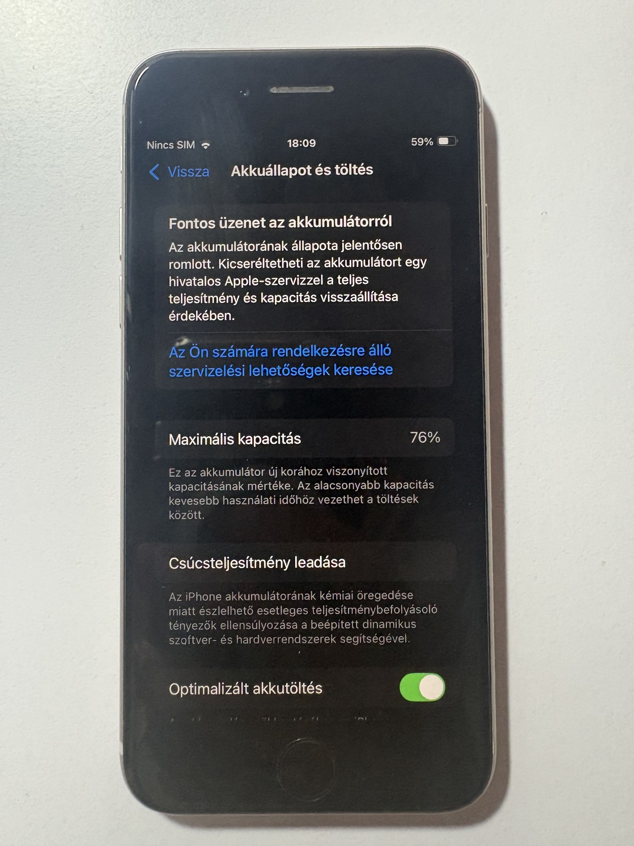 76%-os akkumulátor kapacitással rendelkezik.