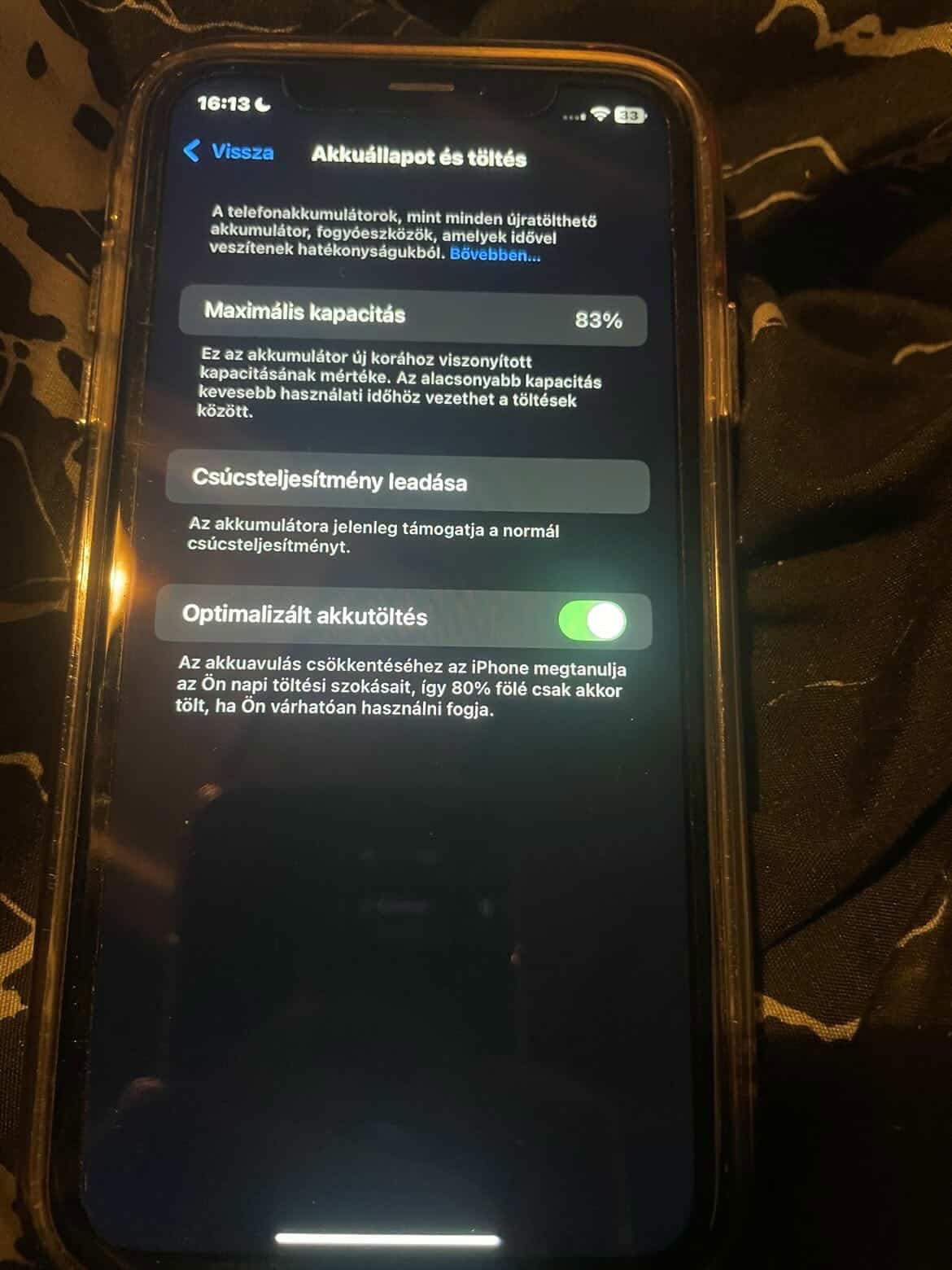 Akkumulátora, mint a képen is látható 83%os.