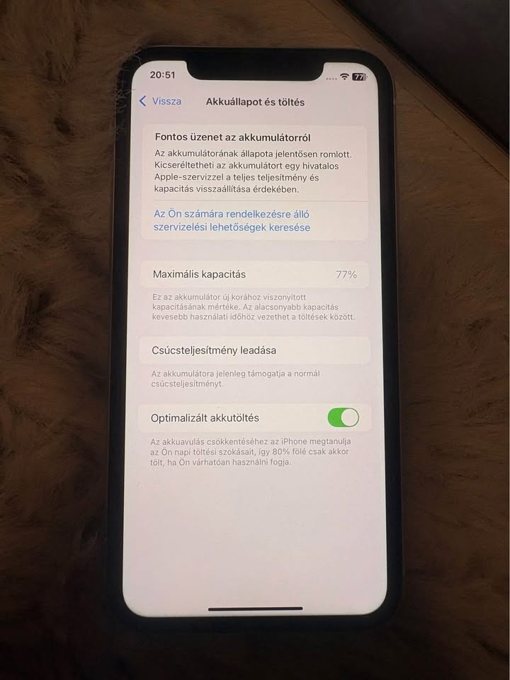 •77%-os akkumulátor.