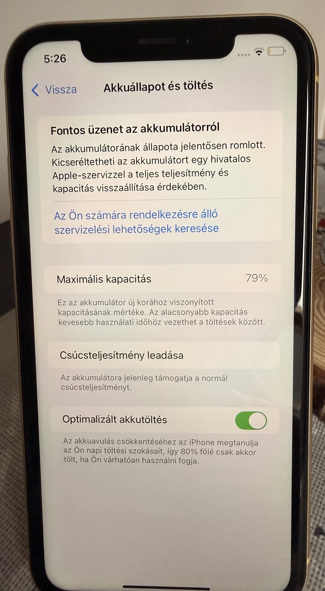 Akksija sajnos szervizes, 79%-os. Tartozékai nincsenek már, csak a készülék maga eladó.