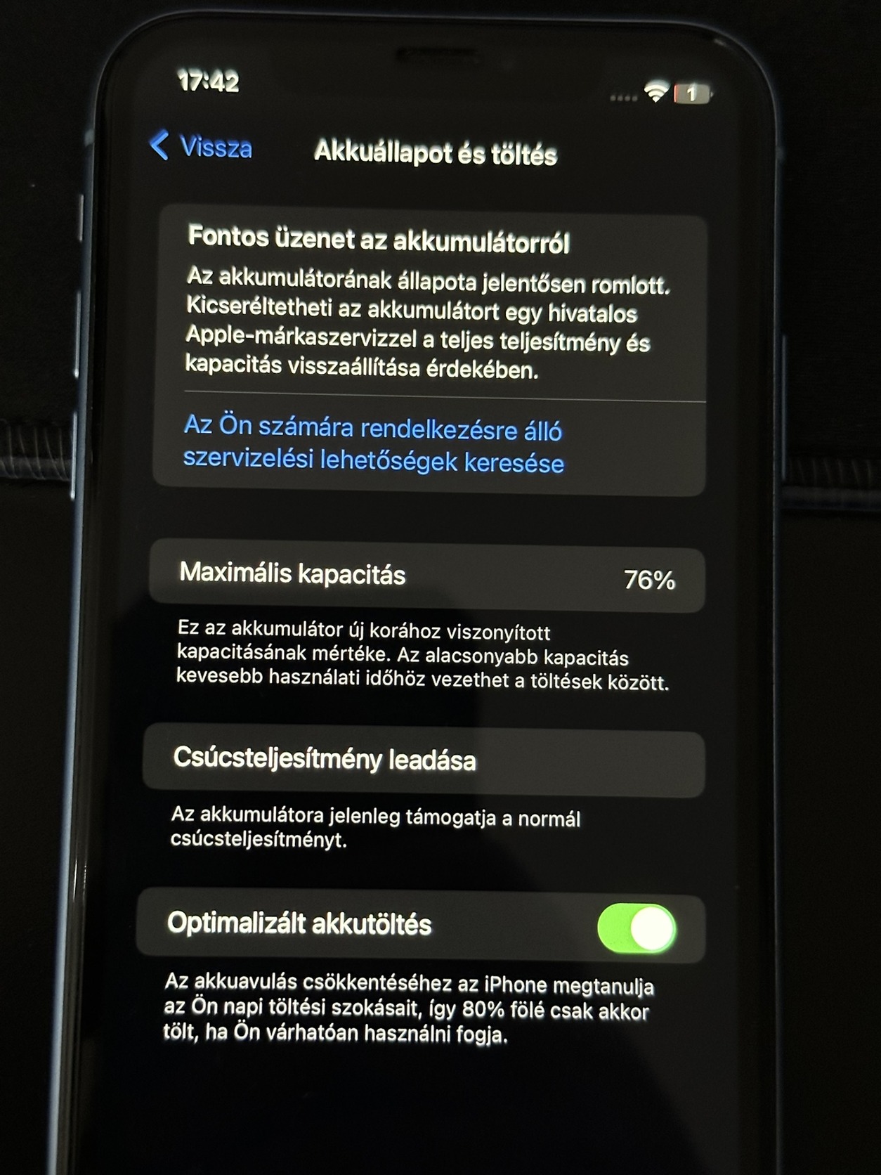 Az akkumulátor 76%-os.