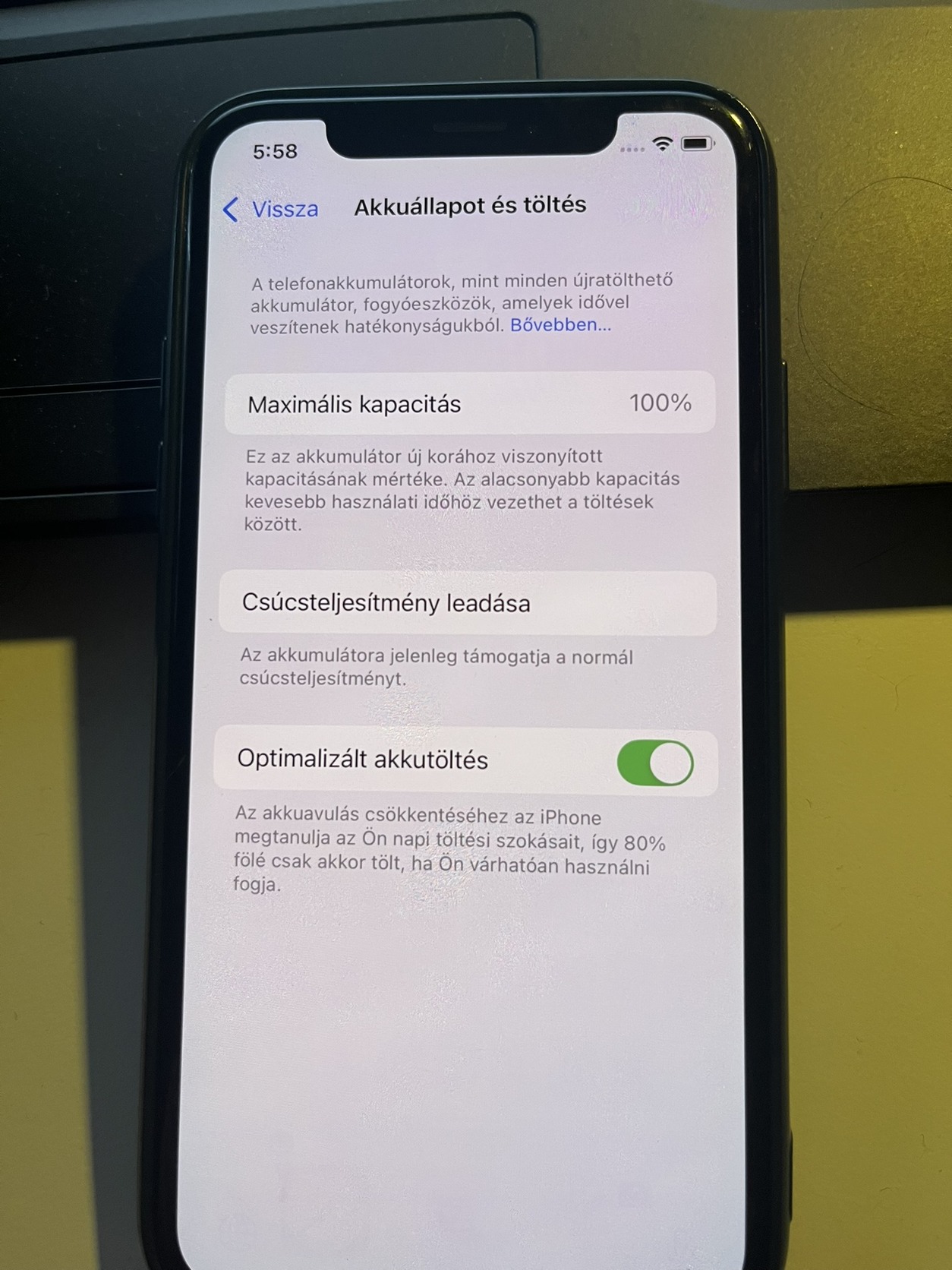 Akksi 100%-os. A telefon működik, eladás oka az, hogy újabbat vettem.