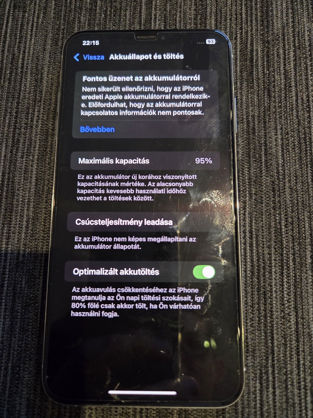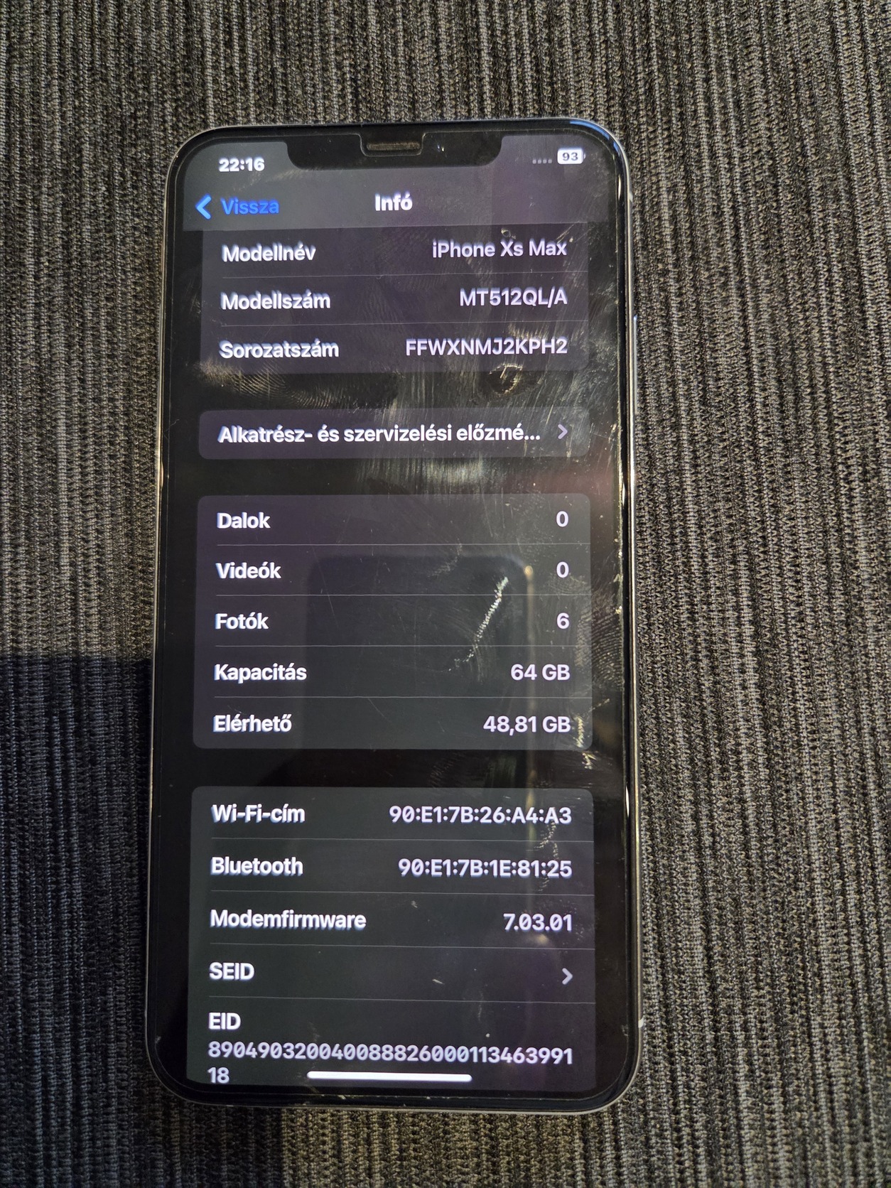 Leírás:Eladó egy iPhone XS Max 64 GB tárhellyel. Az akkumulátor állapota 95%. A telefon bekapcsol és működik, azonban több hibája is van, ezért inkább alkatrésznek vagy javításra ajánlom.