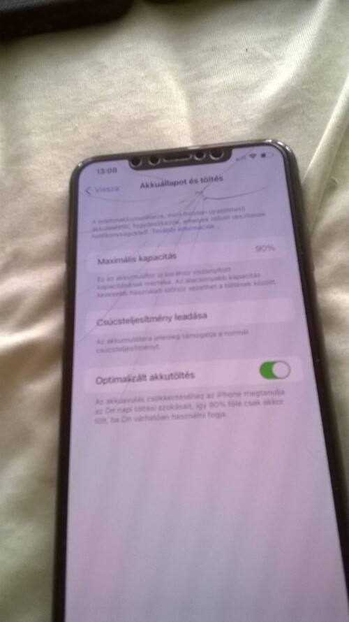 Sajnos elől és hátul is repedt, de ezt leszámítva tökéletesen üzemel, minden funkció hibátlan. (Faceid Truetone stb)