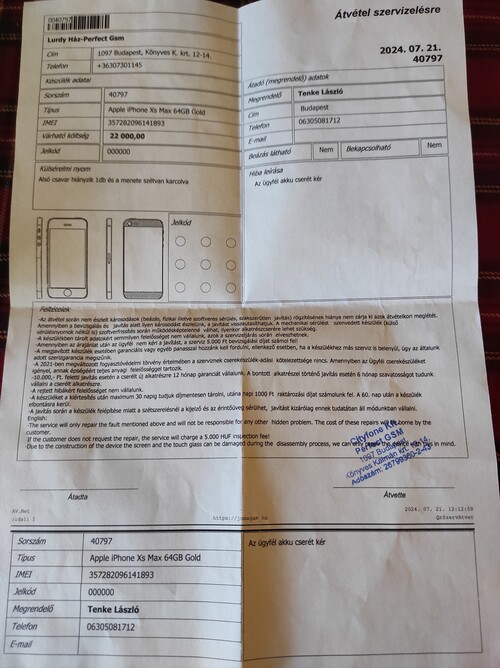 Iphone xs max 64gb. Az akkumulátor új, a szervíz lap csatolva. Szolgáltatótól független, hibátlan működés. Új tokok.