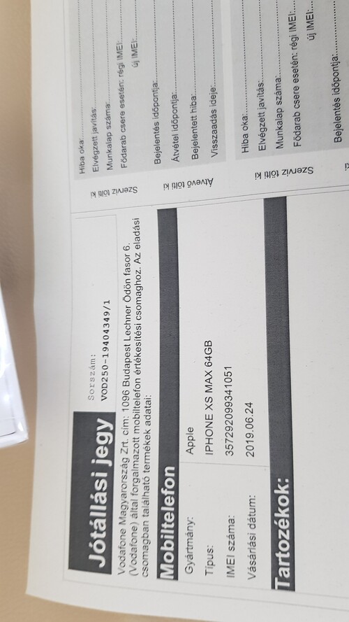 Eladó egy bontatlan, Vodafone függő iPhone Xs Max számlájával,garanciajegyével!
