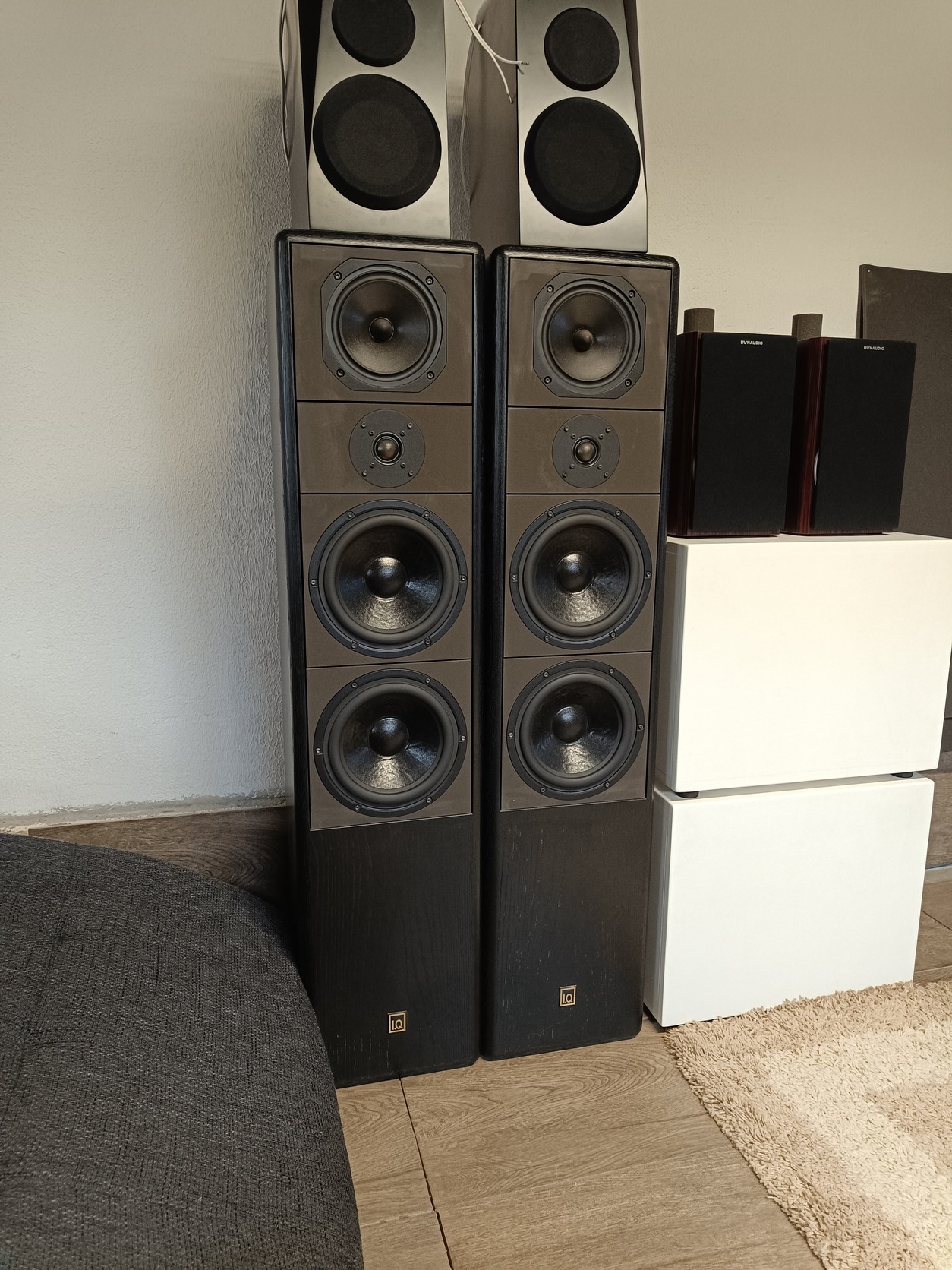 A felépítése is kuriózom, dupla 8" öntvénykosaras mélysugárzók, 6,5" öntvénykosaras fáziskúpos közép, 1" Scan Speak magassugárzó, illetve a hátoldalon dupla 8" passzív membrán.