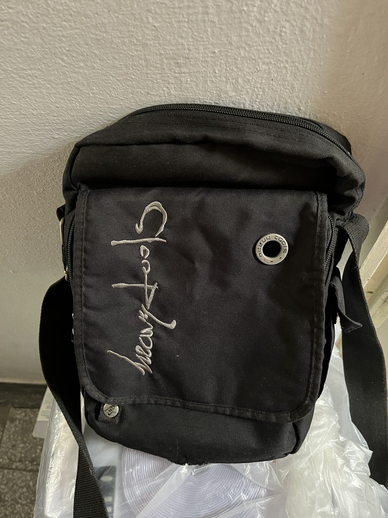 Valamikor rendszeres társam volt az egyetemi iskolapadban, mára már kicsit viseltes, de teljes mértékben használható Heavy Tools válltáska. Három zsebes, az elöl lévő zsebének az alján az anyag megfáradt.