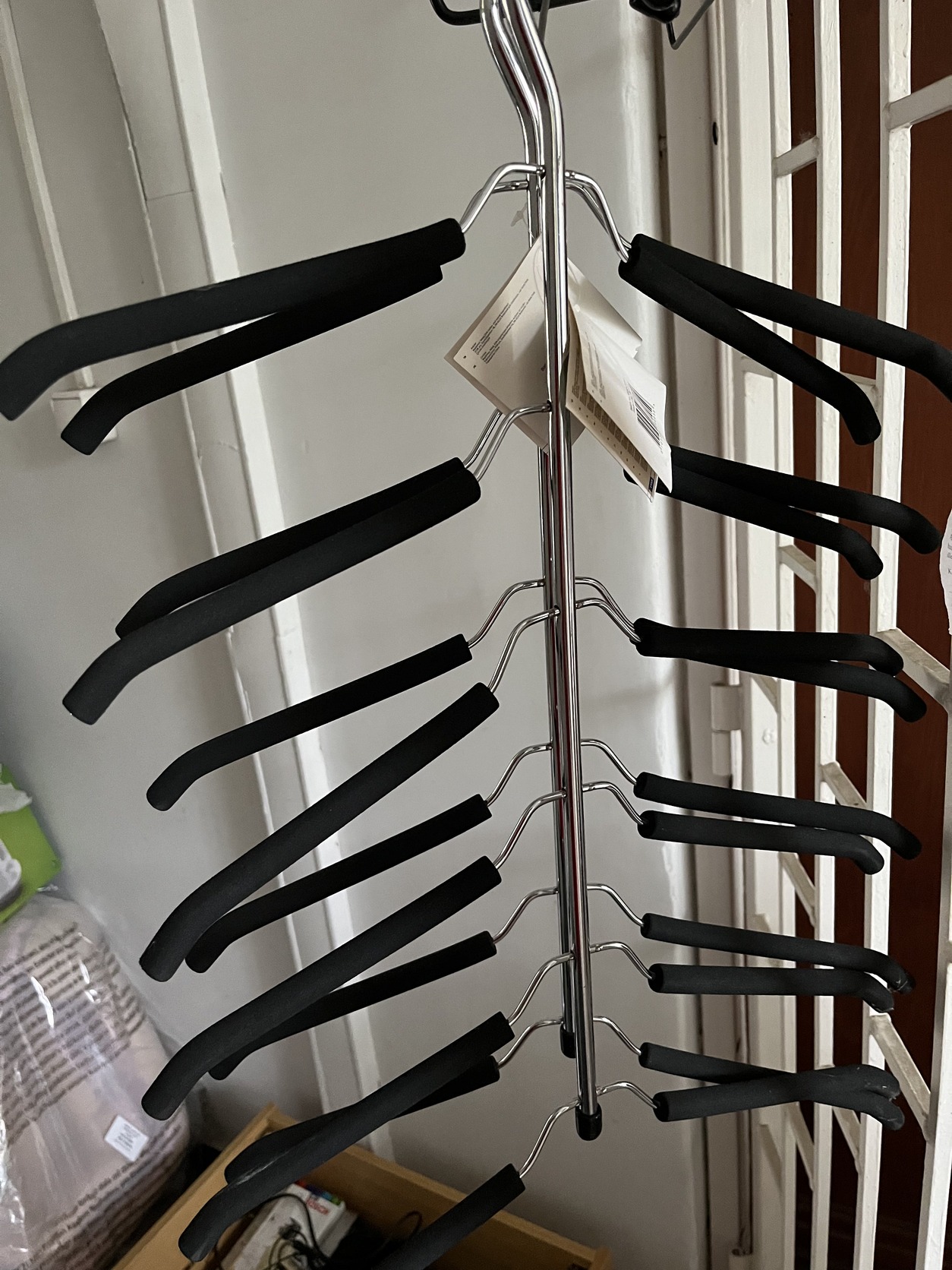 3db vállfa-kígyó (JYSK - BJARKE) 6 darab inghez. Ezekből kettő soha nem használt, még a termékismertető cédula is rajtuk van. A harmadikon pedig értelemszerűen ingek voltak egy szekrényben - ezért sincs rajta a képen, azon sem látszik használat nyoma. A boltban az ára 2750Ft jelenleg, én a töredékéért adom őket.