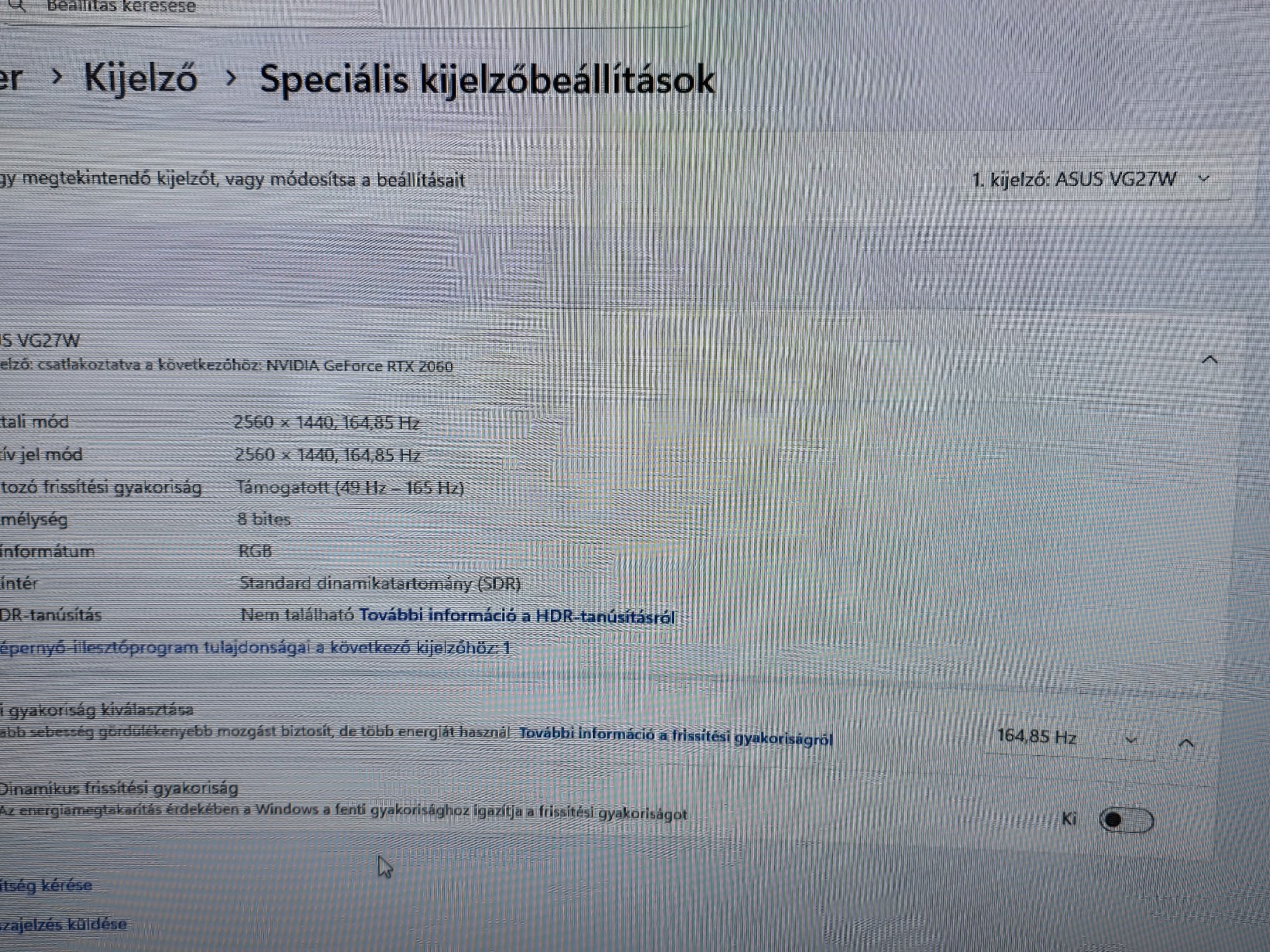 Képfrissítési frekvencia 165 Hz