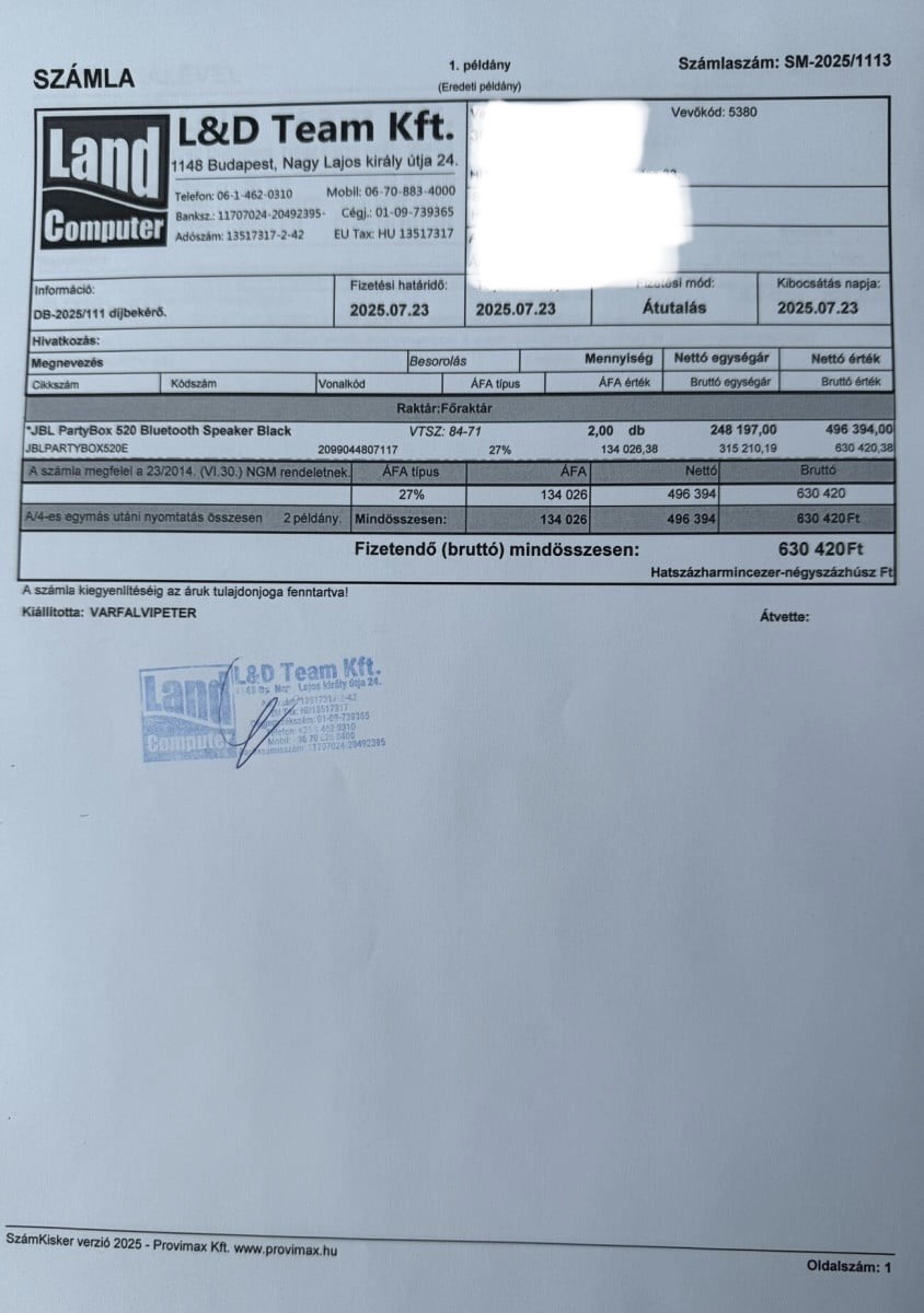 Bolti garanciás 3év. Azaz 2028.07.22.-ig