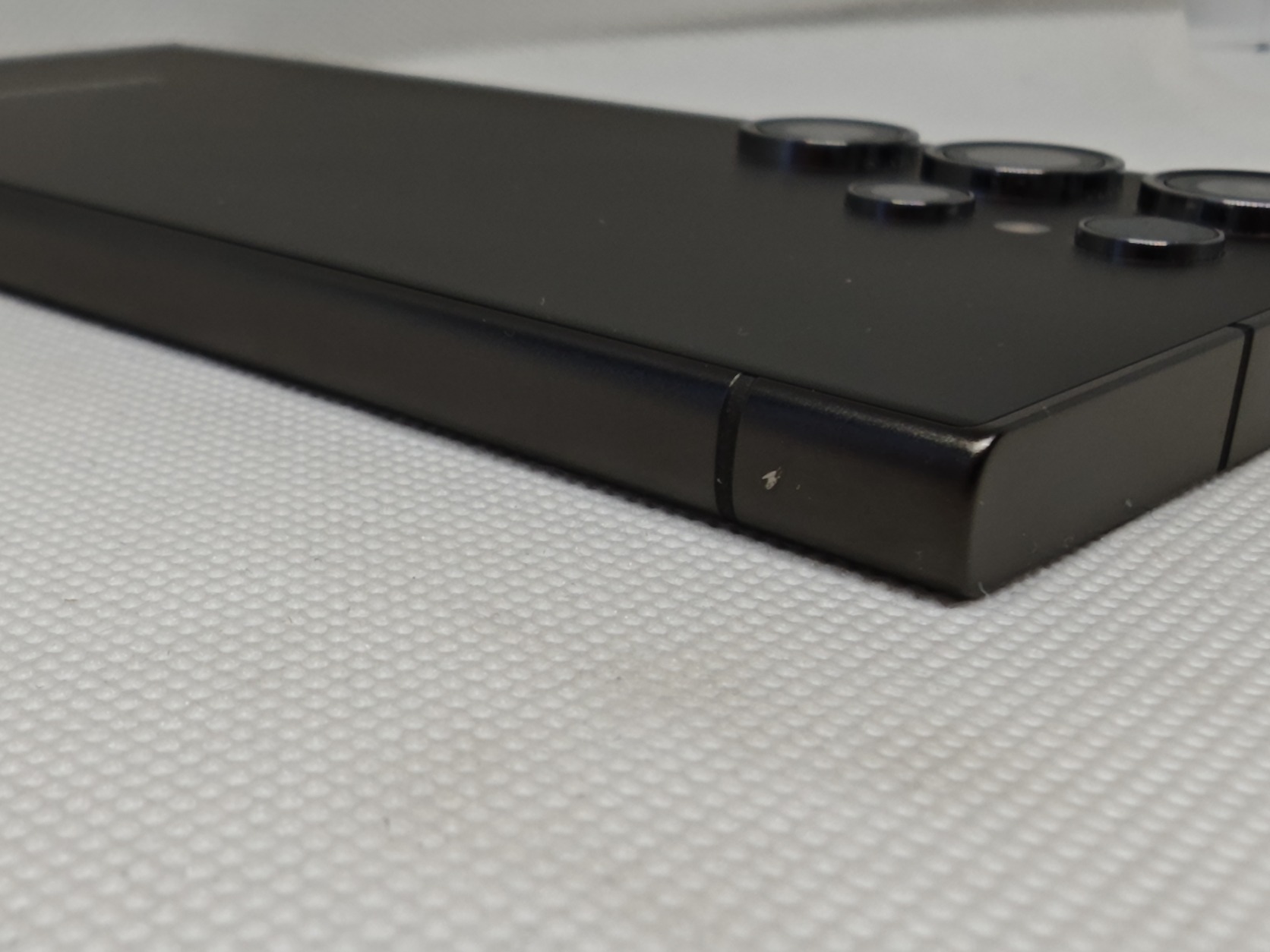 A kereten egy kisebb kopás és a hangerő gombon pár kisebb pötty látható amit fotóztam, ezt leszámítva a keret és hátlap szintén makulátlan.
