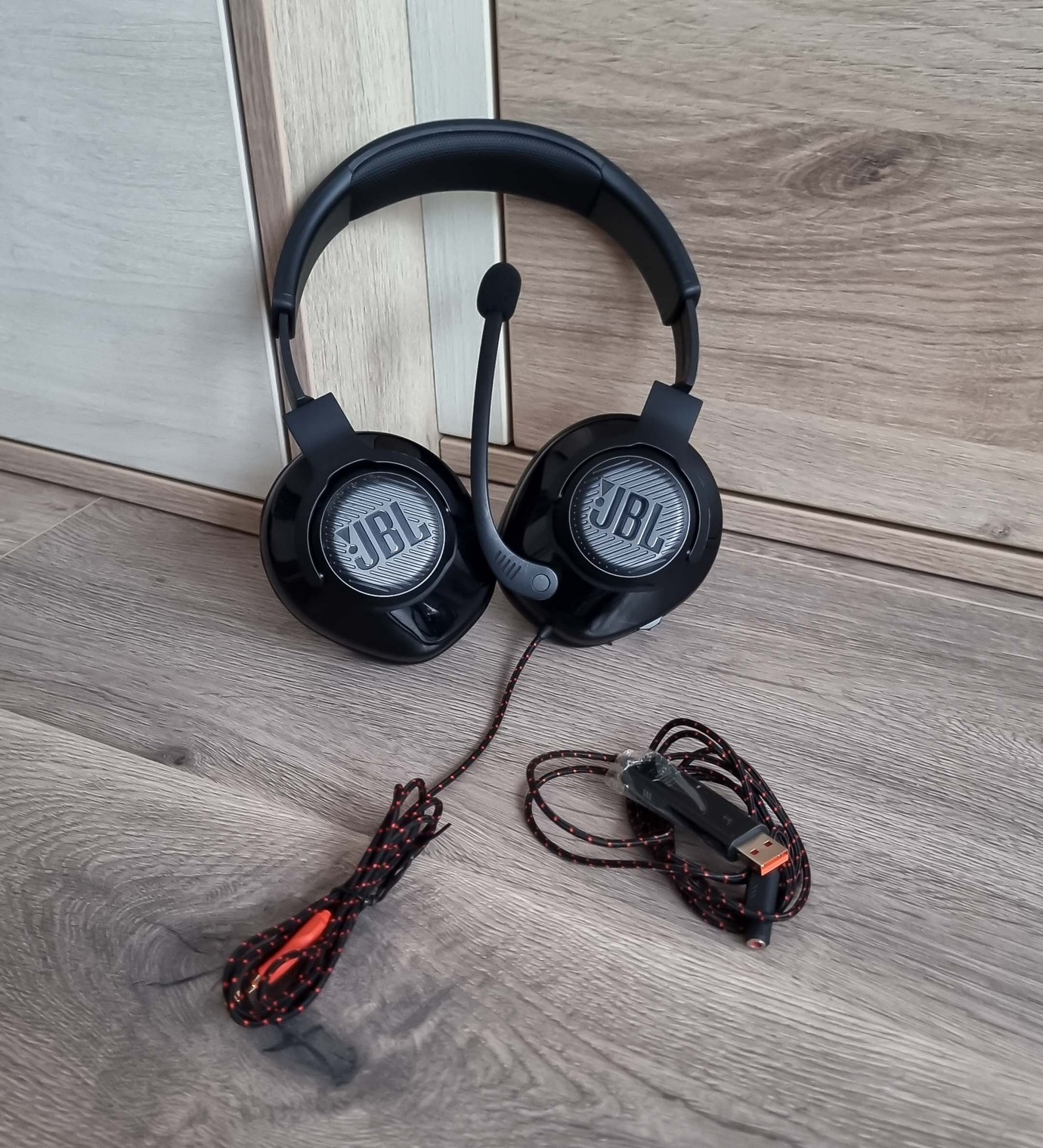 Nagyobbra váltás miatt eladó a képen szereplő JBL Quantum 300 fejhallgató dobozában.