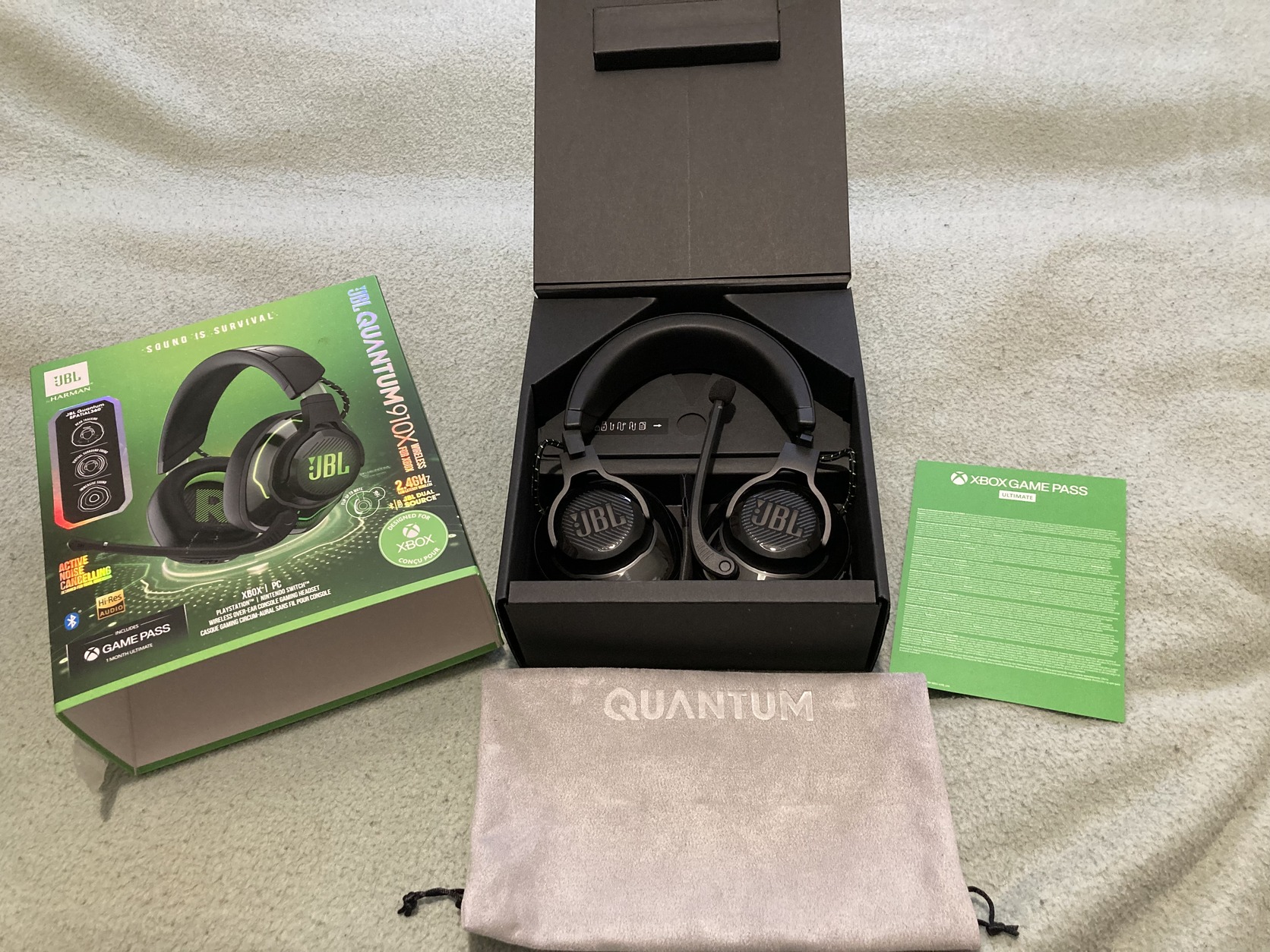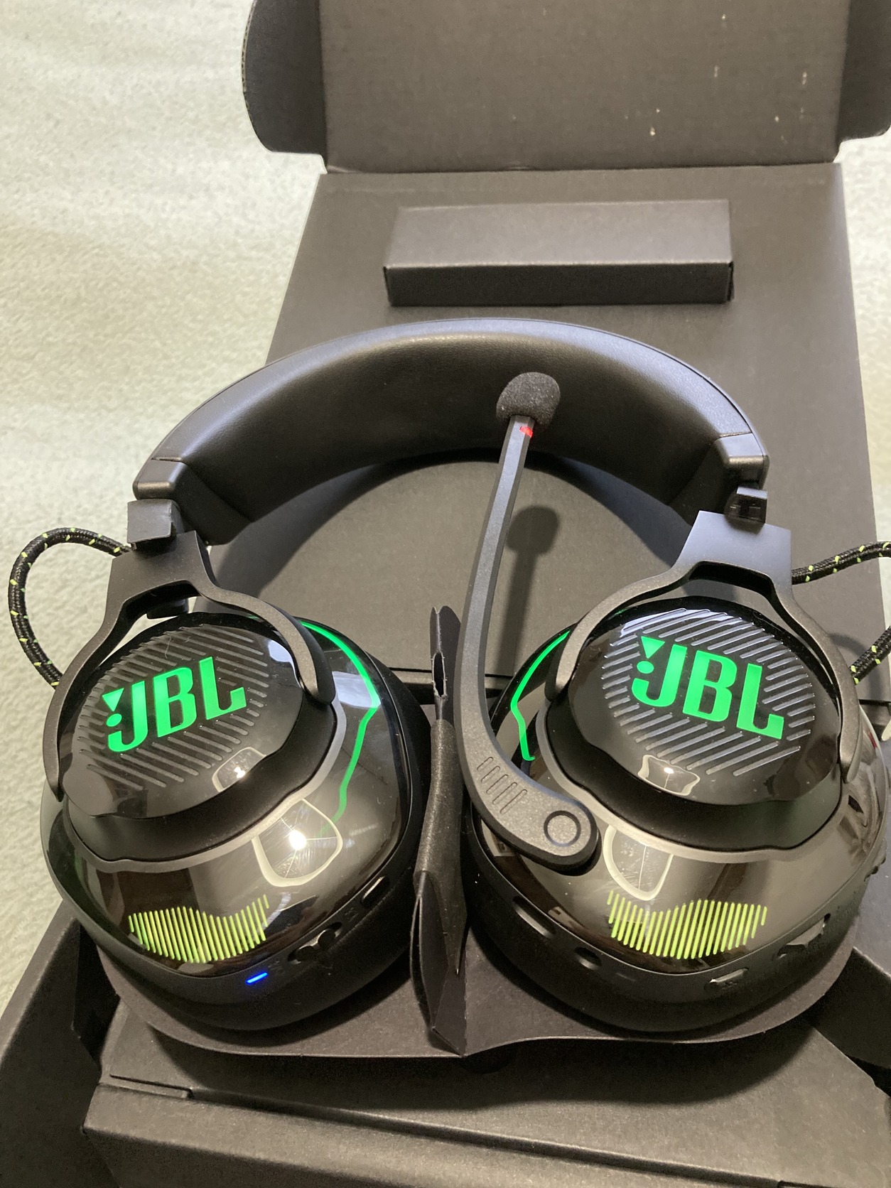 JBL Quantum 910X wireless gamer fejhallgató dobozában, új állapotban, kb egy órát se ment. Dobozban minden eredeti csomagolásban. (Leírás, stick, usb C és jack kábelek)