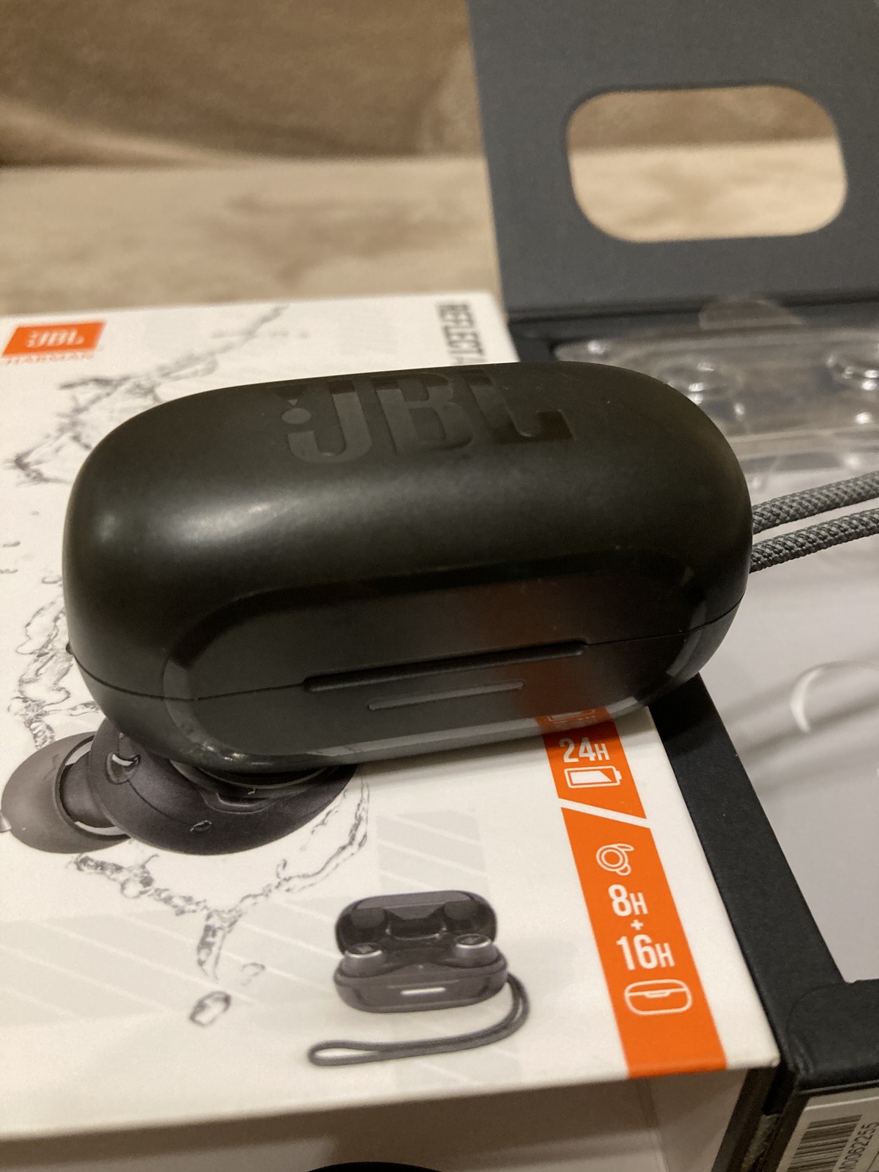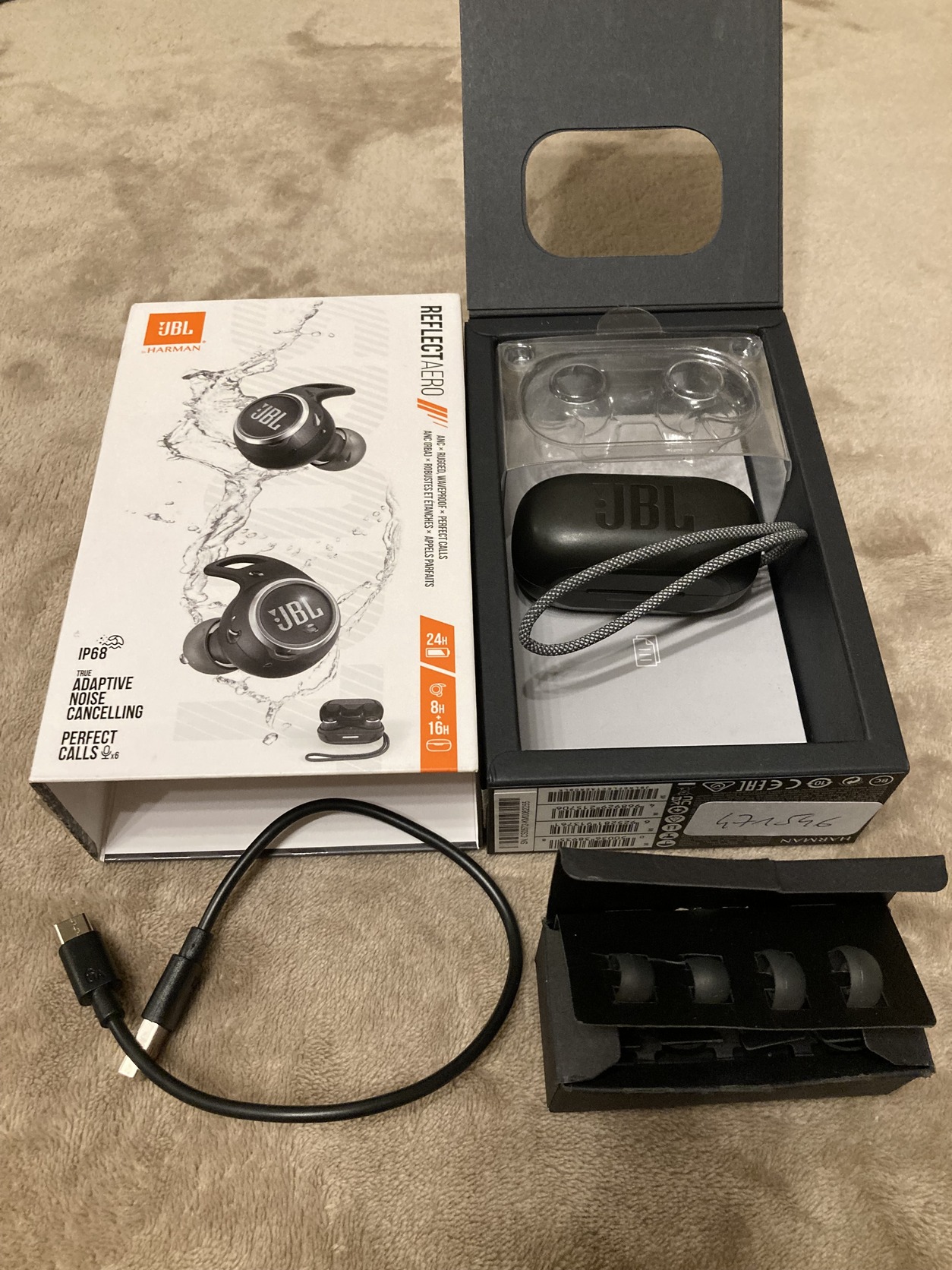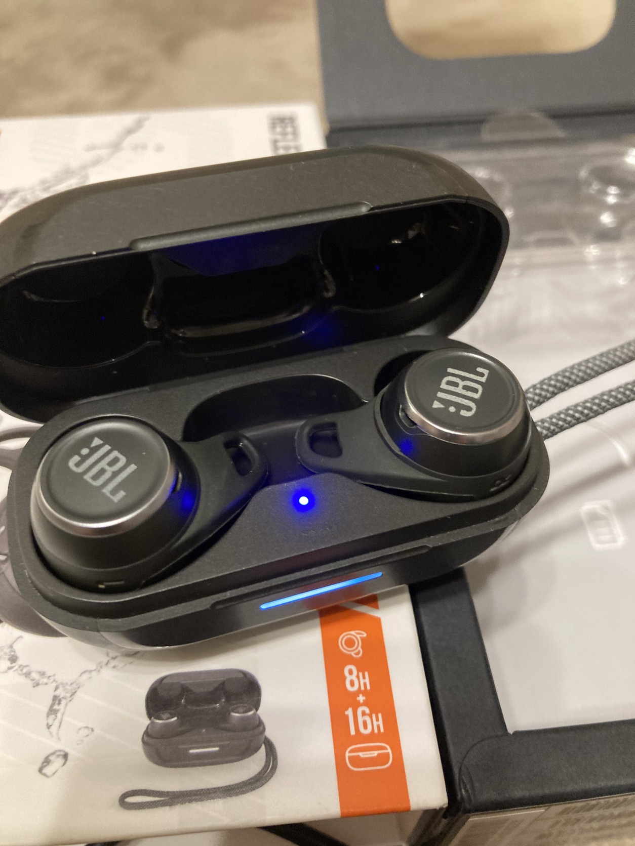 Eredeti JBL Reflect Aero bluetooth fülhallgató dobozában, minden kiegészítőjével, (gyári SML gumik + támasztékok, töltőkábel, leírás) kiváló akkuval.