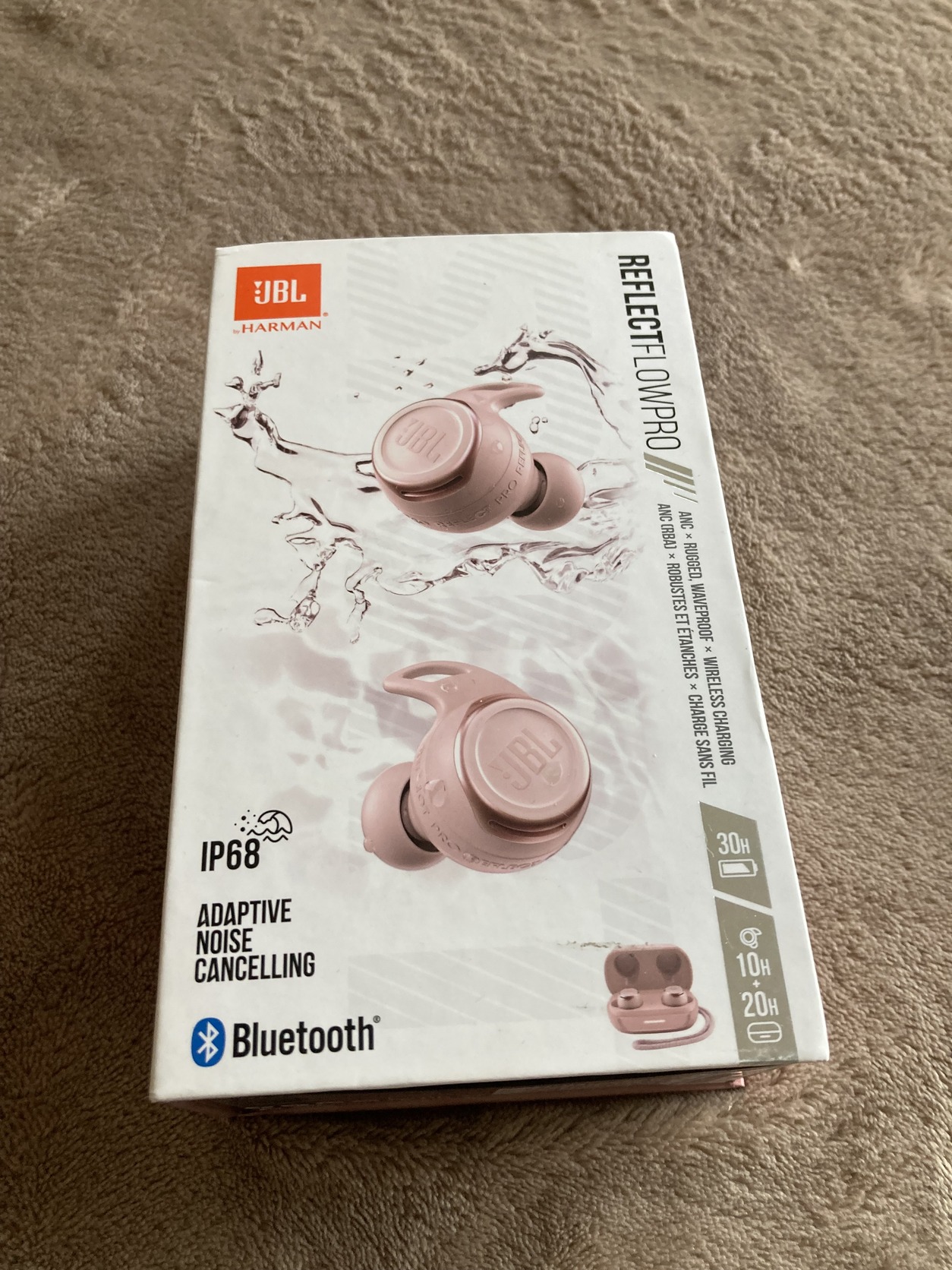 JBL Reflect Flow Pro zajszűrős bluetooth fülhallgató dobozában tartozékaival: töltőkábel, SML gumiszett, XS SML támasztékok, leírás. Szép állapotban, jó akkuval.