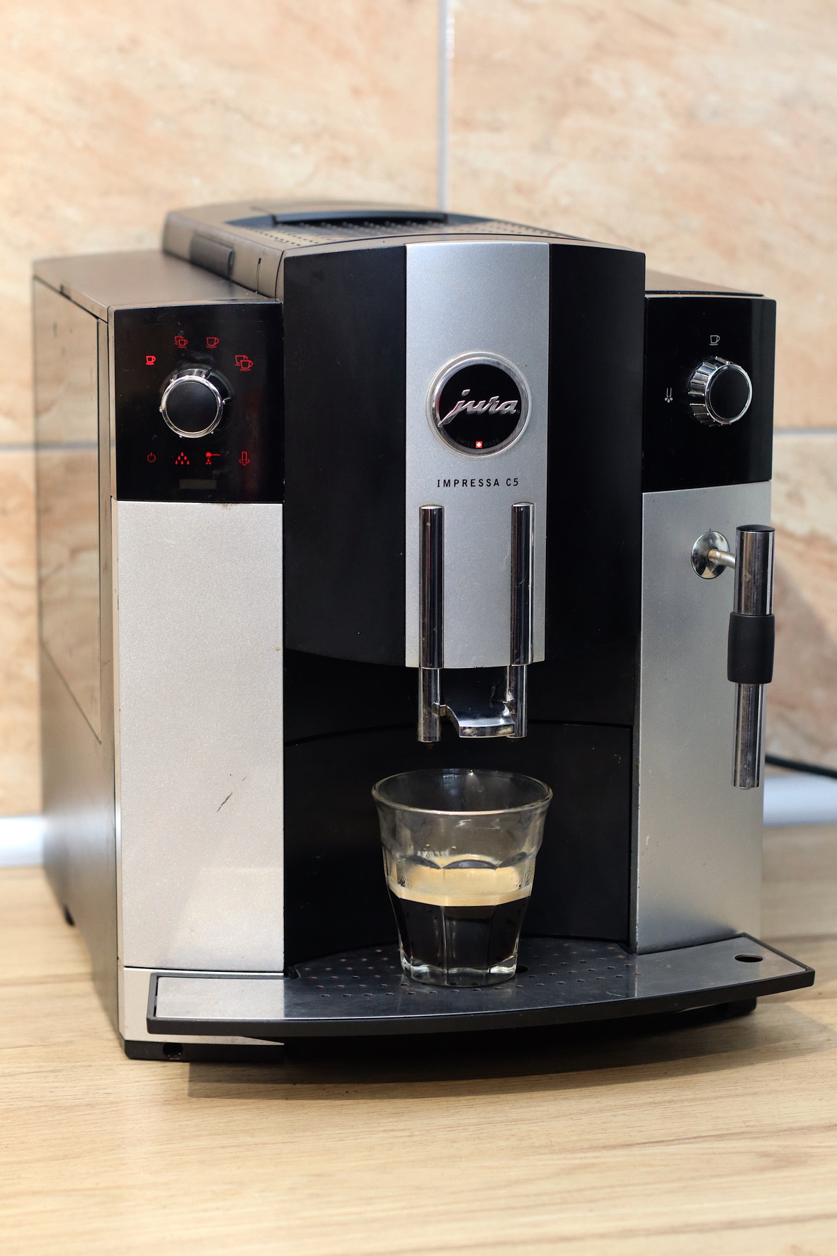 Eladó a képen látható szép állapotban lévő és hibátlanul működő Jura C5 automata kávéfőző.